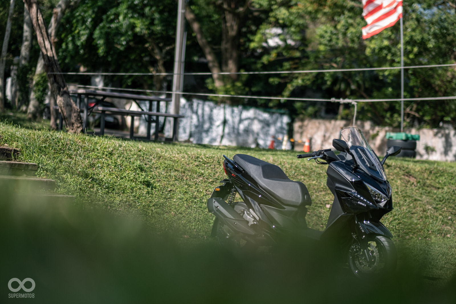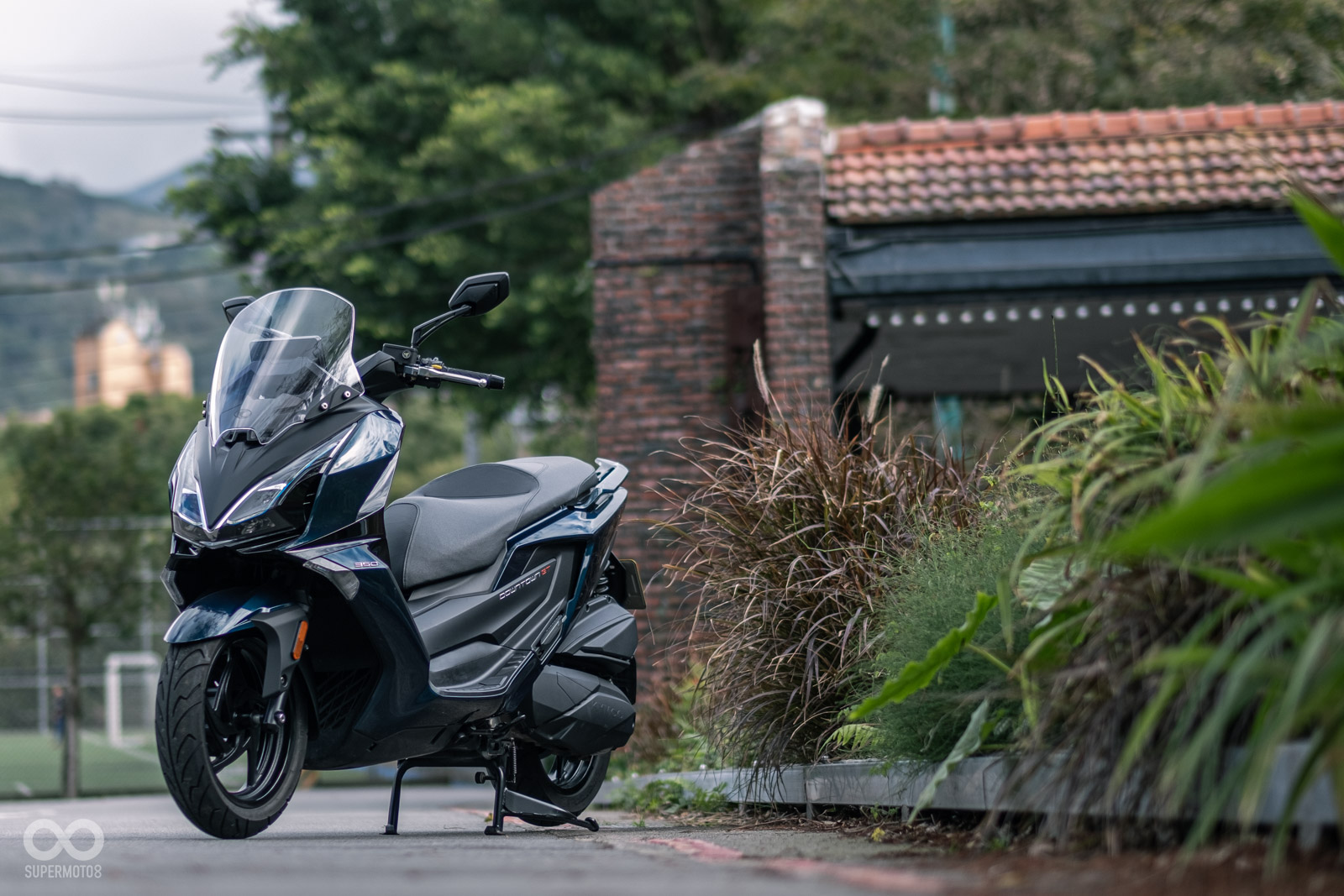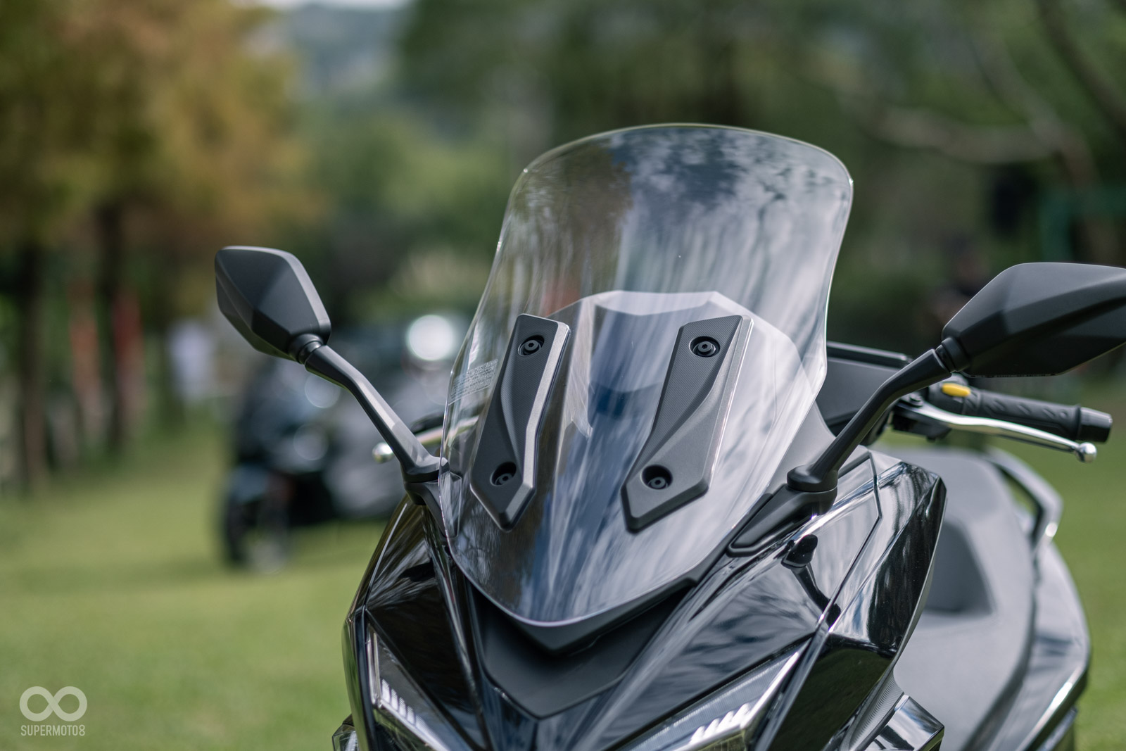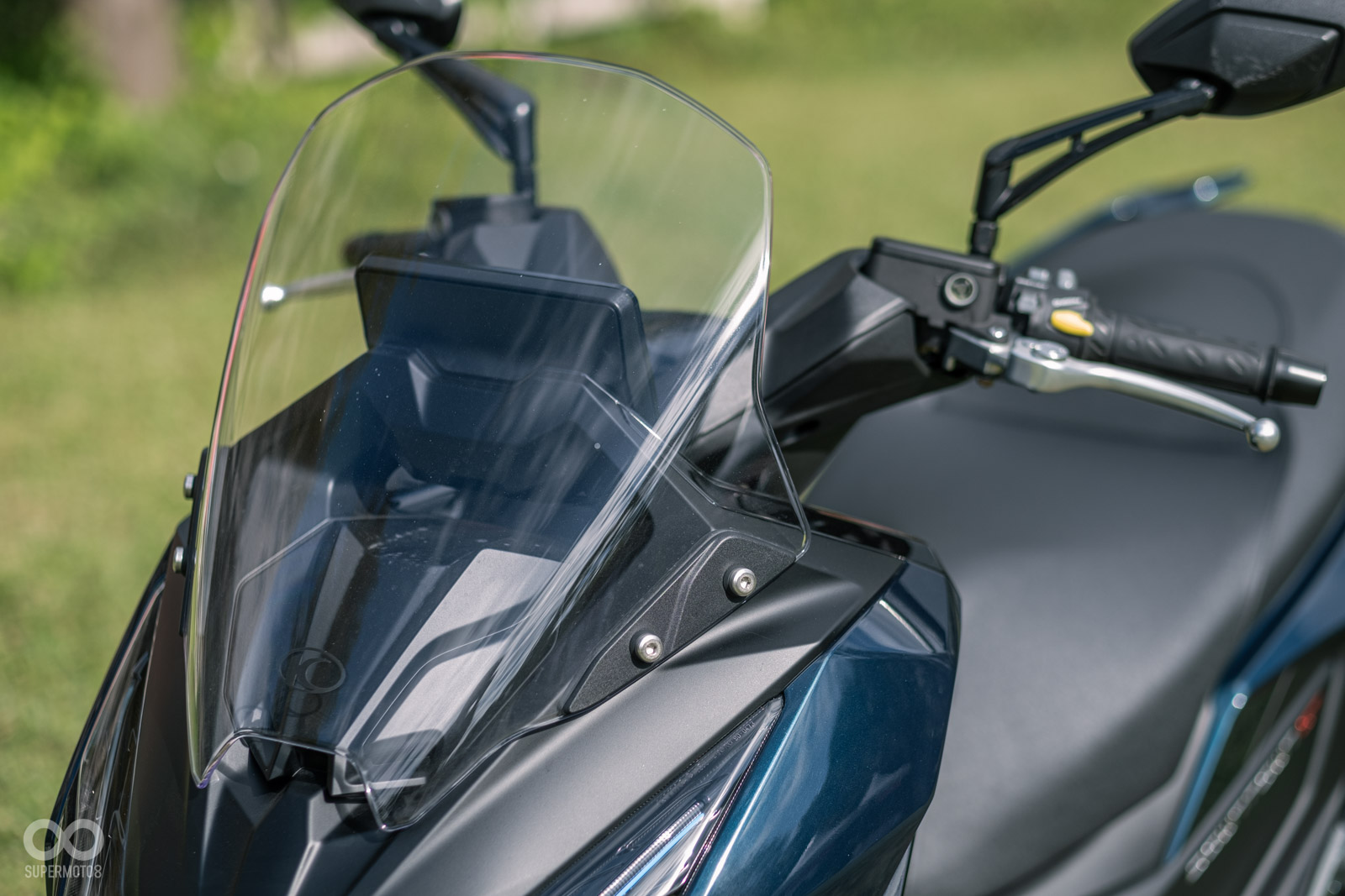 GT350 配備有 KEYLESS 免鑰匙系統和 LCD 儀表板,能清晰呈現所有重要騎乘資訊,可惜風鏡採用不可調整的設定,但風鏡相當寬敞,在身體部分的擋風效果相當不錯,頭部位置想要更好的防風效果的話,可能需要靠後續改裝高風鏡來達成。