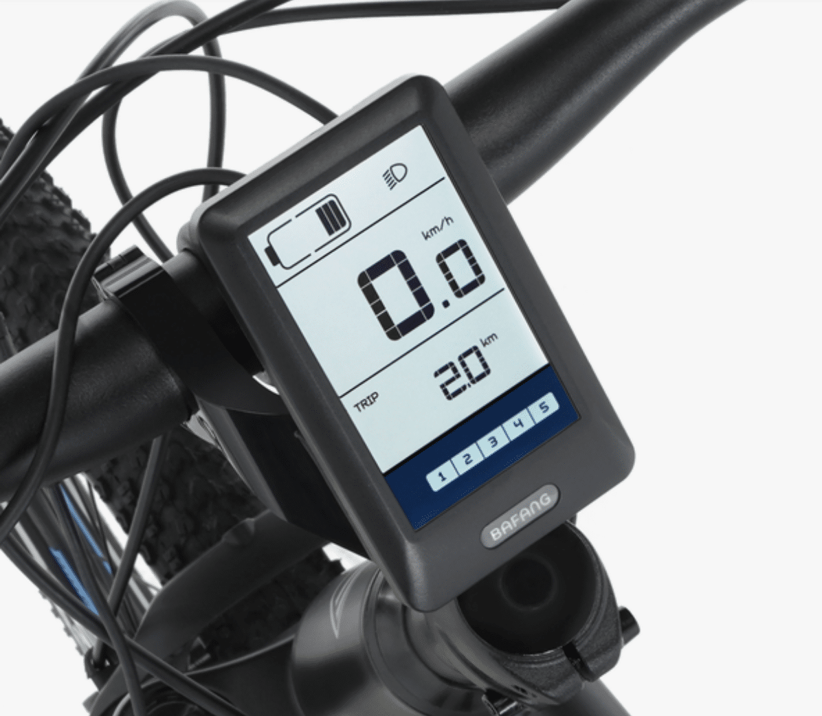 這台 E-MTB 採用 27.5 吋輪徑,搭載 Bafang 的後輪驅動馬達,提供 45 Nm 扭力,雖說不是用來挑戰極限山地,但應付一般的郊外騎乘或城市道路絕對游刃有餘。還有一個清晰的 LCD 螢幕,方便顯示速度、剩餘電量等重要資訊。