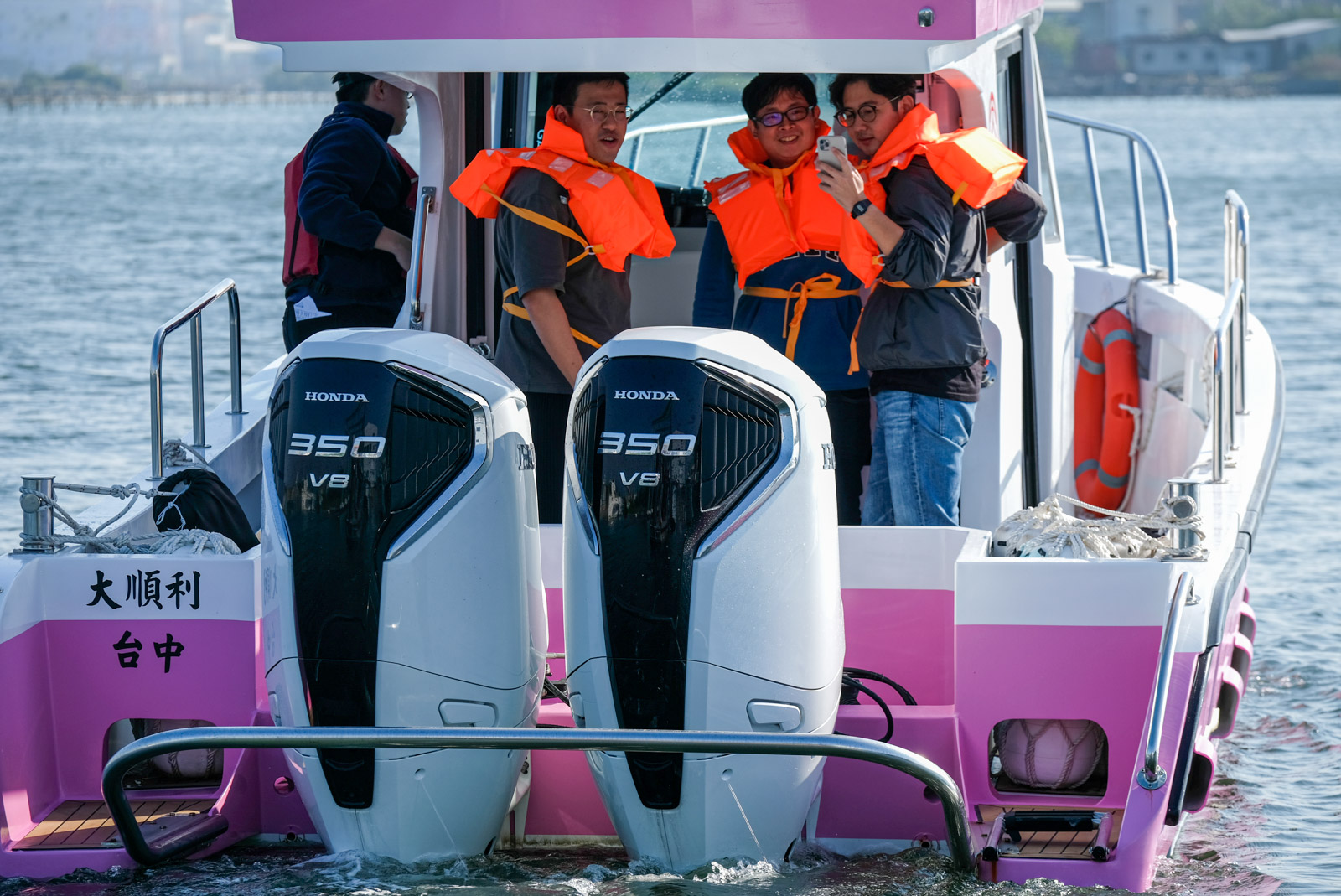 此次發表會還安排了 BF350 的試乘活動,我搭乘了不同型號的中型 FRP 與鋁製娛樂漁船,親身感受到船在安裝單船外機,雙船外機狀況下,在各種速度範圍內的卓越表現。無論是巡航時的穩定性還是加速時的強勁推力,特別是VTEC 開啟時根據船長表示,動力湧現感會相當明顯。在專業人員協助下坐上駕駛位,實際推下油門推桿,飽滿的動力表現確實令人印象深刻。