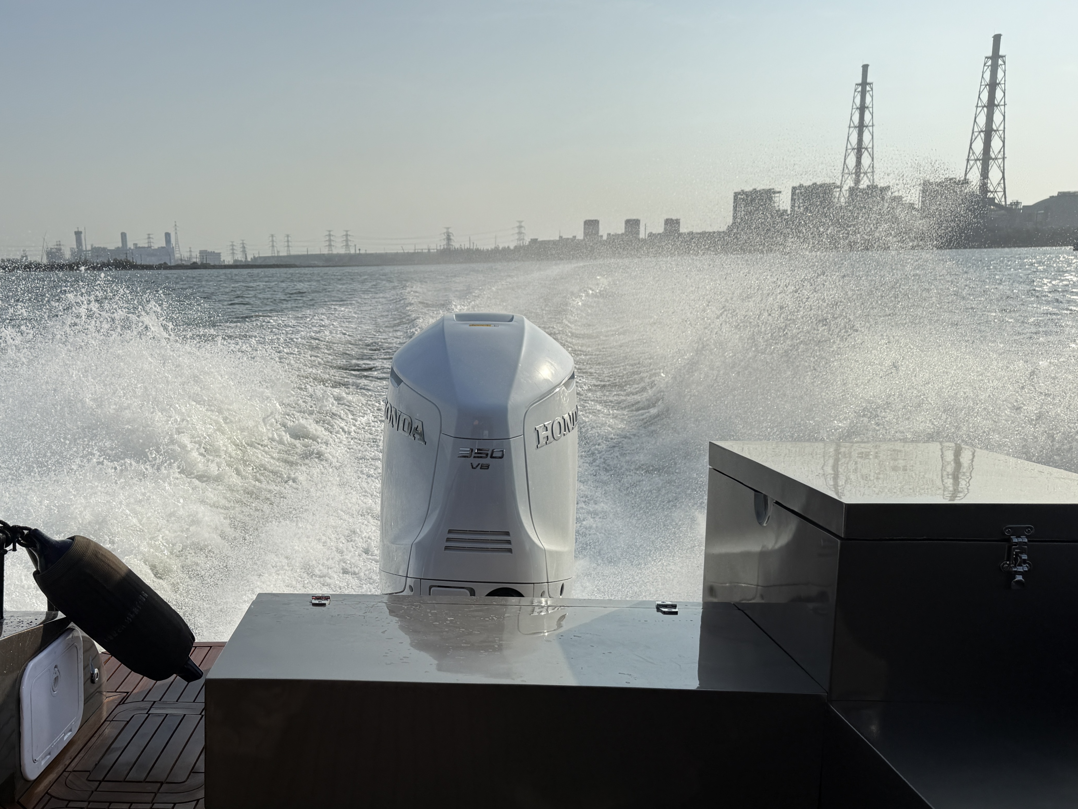 而現場體驗到的不論是單船外機、雙船外機,現場體驗到的兩艘船有個共同印象就是安靜,無味,採用四行程引擎的前提下讓你在現場不會有令人窒息的廢氣味道,而原先期待V8 引擎會有震撼的音量,結果催到6,000轉也沒有太多噪音,安靜跟無臭味,反而是這次試乘體驗中印象最深刻的特點。