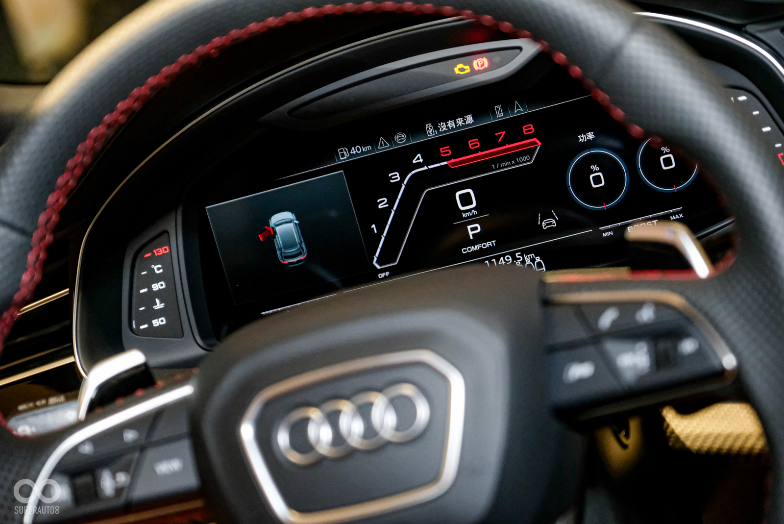 剽悍駕馭勁現: 於紐柏林賽道創下卓越速度佳績的Audi RS Q8 ,其核心搭載 4.0 升 V8 雙渦輪增壓引擎,帶來剽悍動力可釋放高達 600hp最大馬力及 800Nm的最大扭力,0-100 km/h 僅需3.8秒,卓越加速勁現;針對動態操駕,其標配品牌精髓quattro 智慧型恆時四輪傳動系統、動態全輪轉向系統及跑車化氣壓懸吊系統,面對各式路況無論高速行駛或過彎,均能以 RS 的極致性能,靈活俐落以對,給予消費者性能、舒適兼具的質感駕馭享受。