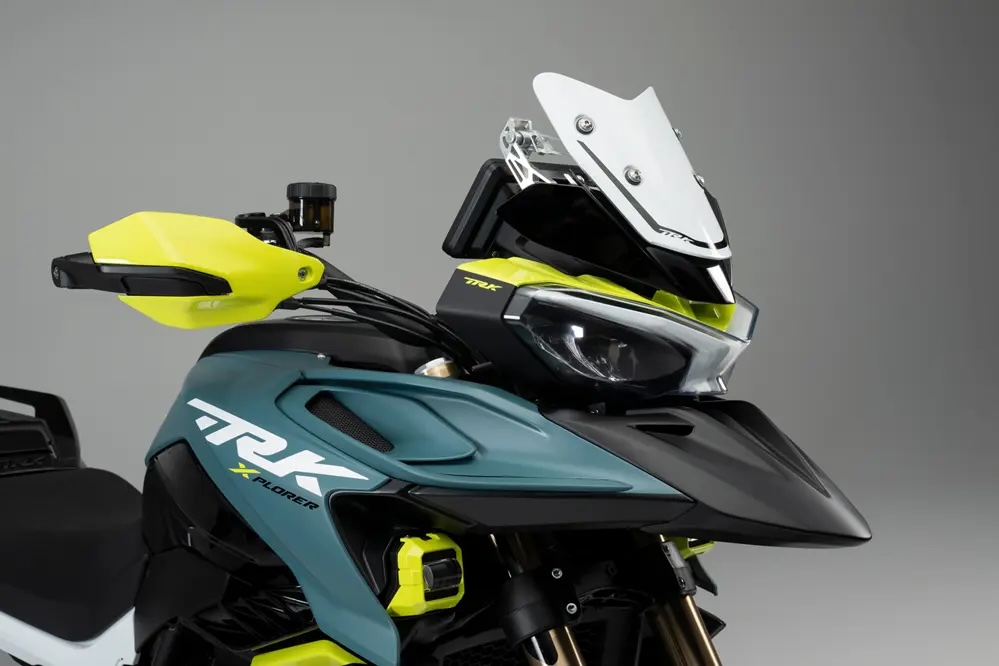 TRK 902 Xplorer 不僅配備 Pirelli Scorpion Rally 輪胎與 Brembo 高性能制動系統,還內建 7 吋彩色儀表、導航功能、胎壓監控與 22 公升大油箱。電子調整風鏡更提升了長途騎行的舒適性。