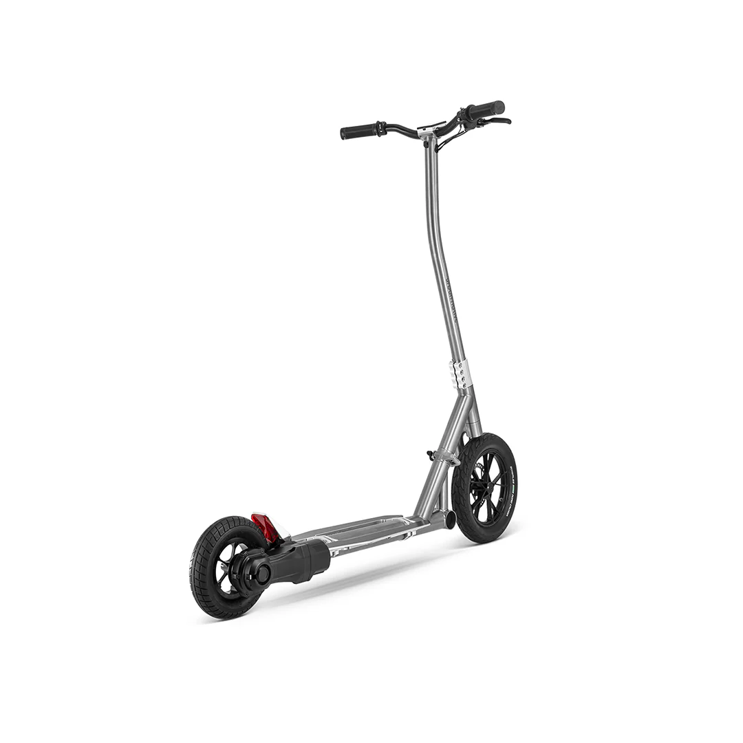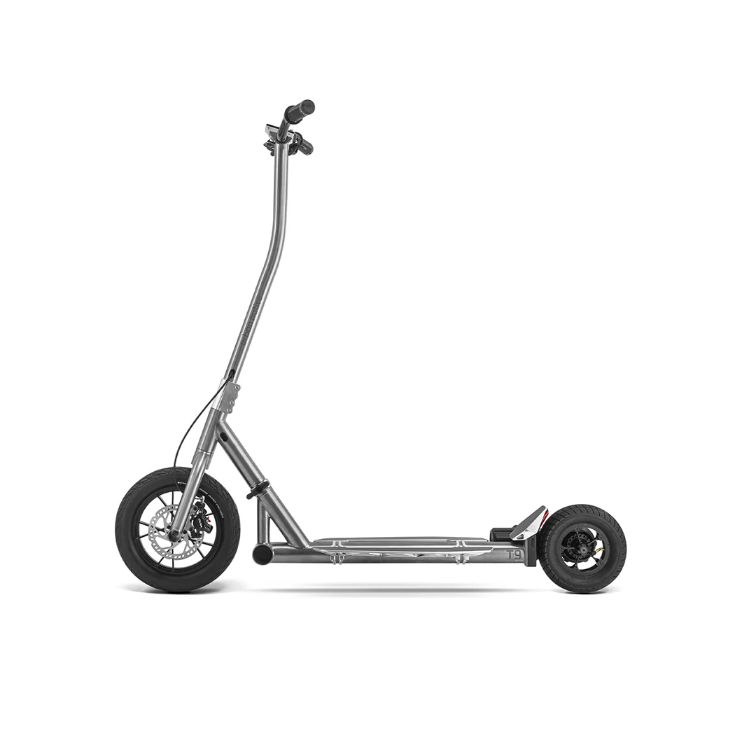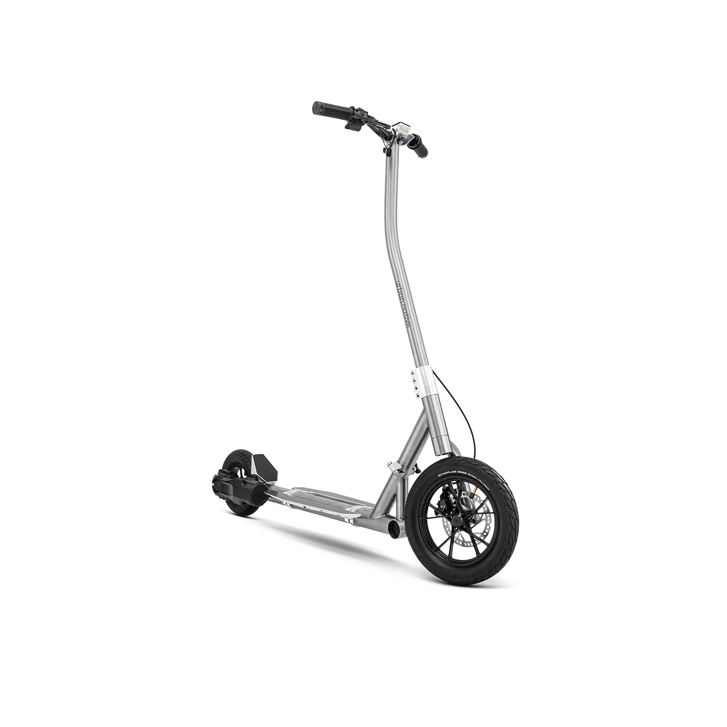 Urban Native T9的最大亮點在於其Grade 9鈦合金框架,讓整車重量壓縮到令人驚嘆的9.9公斤,足以在市場上稱霸輕量級電動滑板車領域。更有趣的是,鈦合金的彈性結構讓T9不需要傳統懸吊系統,同時保留舒適的騎乘體驗。加上12吋的越野前輪與8.5吋的後輪,這款車在穩定性與操控性之間找到了絕佳平衡。