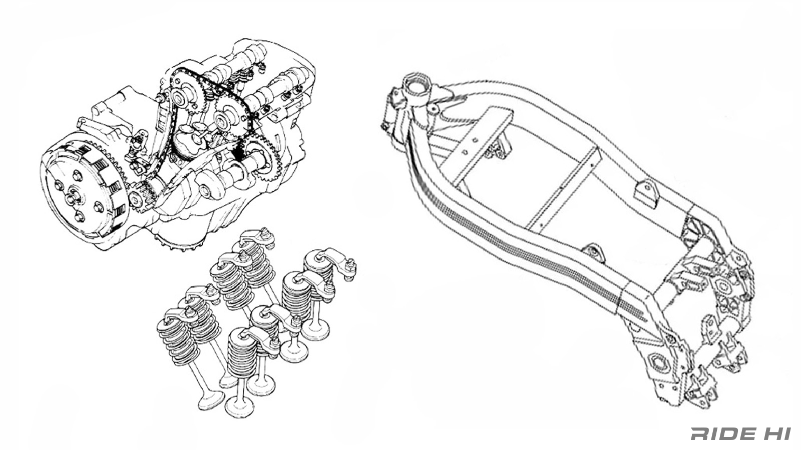 在四缸引擎開始席捲市場的 1990 年,Kawasaki 卻另闢蹊徑,為 ZZR250 選擇了來自 GPZ250R 的雙缸引擎。這顆 248c.c. 的雙缸短行程引擎,搭配每缸四氣門設計,能輸出 40 匹馬力(12,500 rpm)與 2.4 kg-m 扭力(10,000 rpm),在中速域表現尤為亮眼。