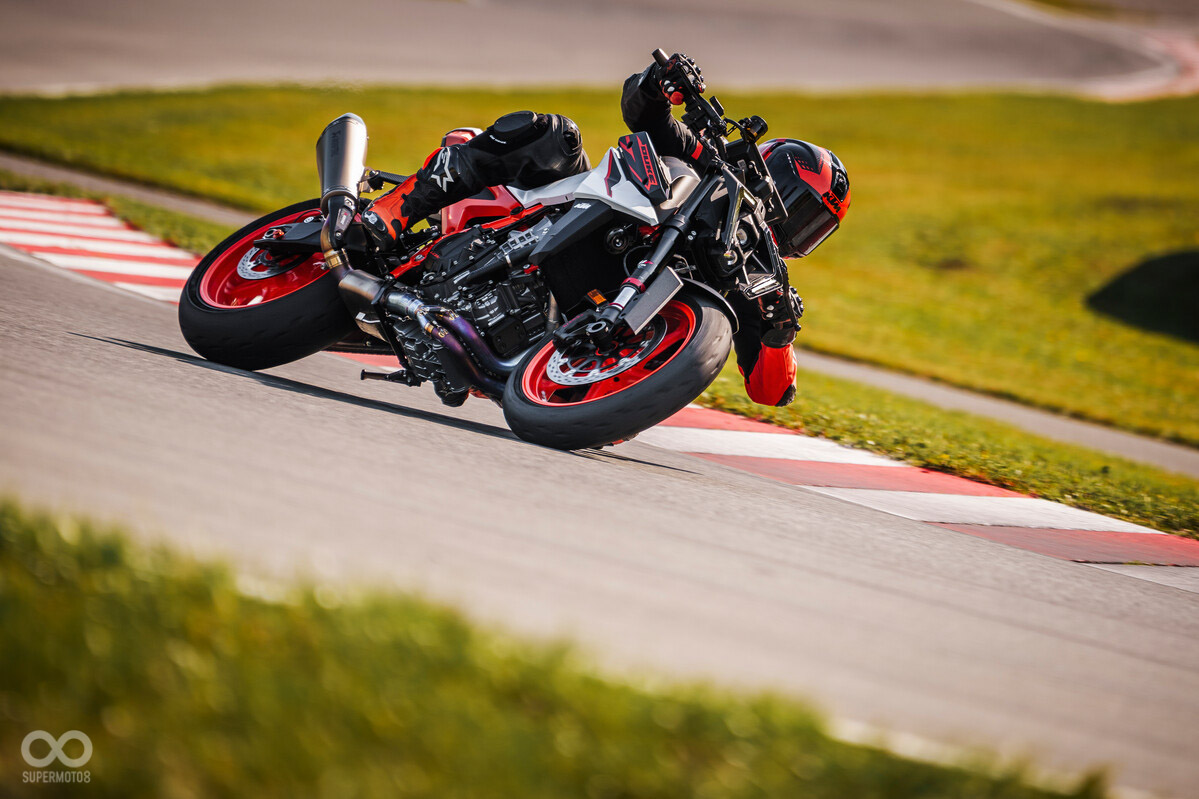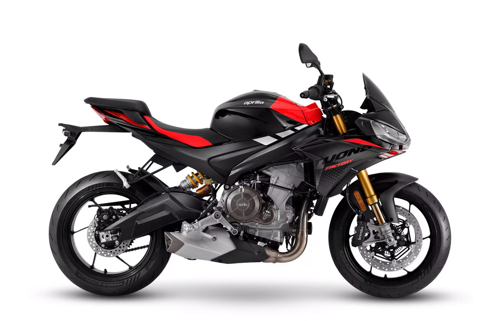 Aprilia 的 Tuono 660 Factory 配備了659cc並列雙缸引擎,輸出達到 105 匹馬力,比上一代提升了 5 匹。車重僅為 181 公斤,搭配全新 Öhlins NIX 30 前叉與 STX 46 後避震,這款車在街道與賽道之間取得了完美平衡。