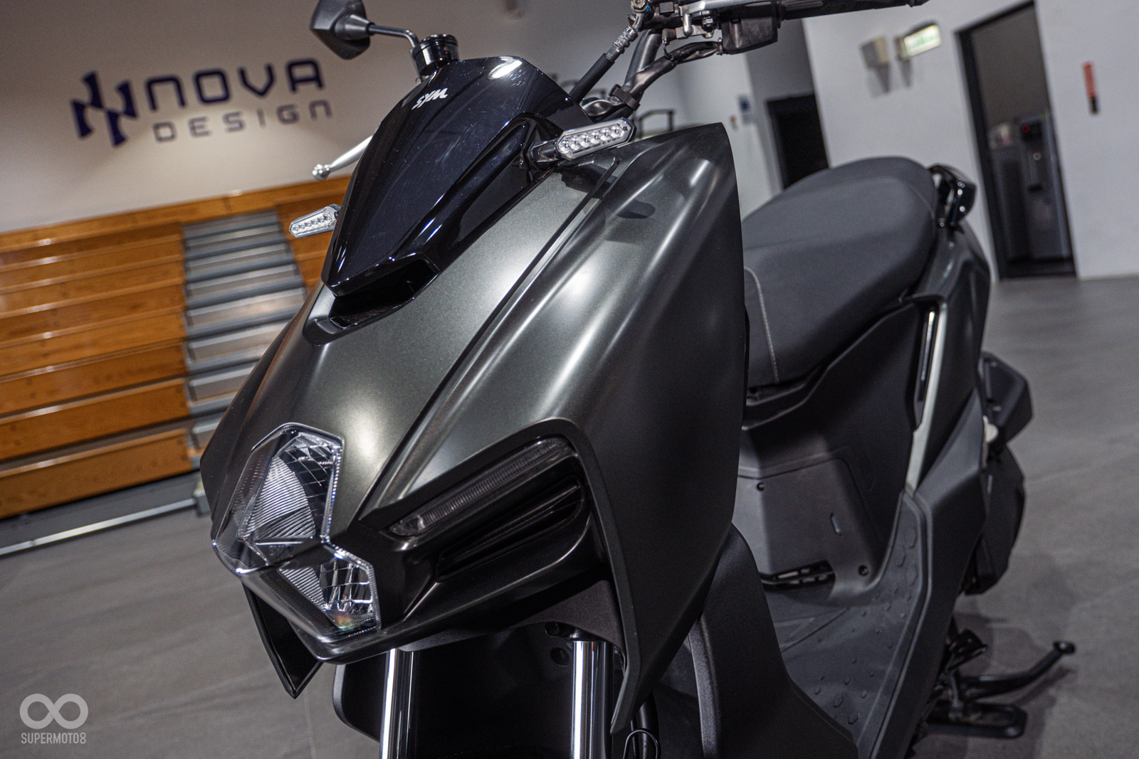 眼尖的朋友應該也注意到,本次拍攝的車款是2025年全新推出的「漠影黑」車色,SYM表示自從 MMBCU 上市以來,車迷一直希望想要有黑色車款選擇,漠影黑同樣採用變色烤漆,實際成色有點類似深灰或鐵灰質感,搭配帶點銀色的變色效果,打造出更神秘帥氣的風格特徵。