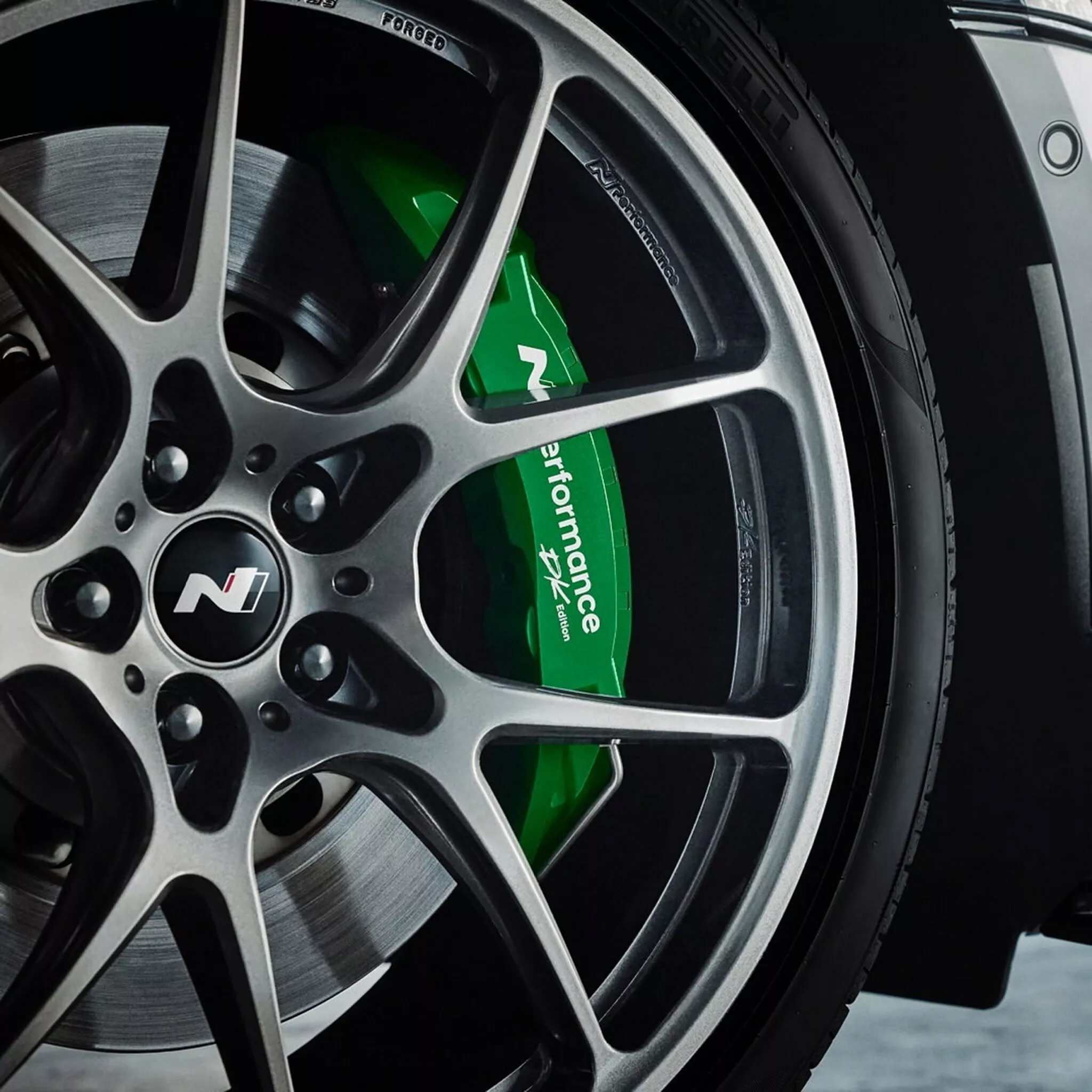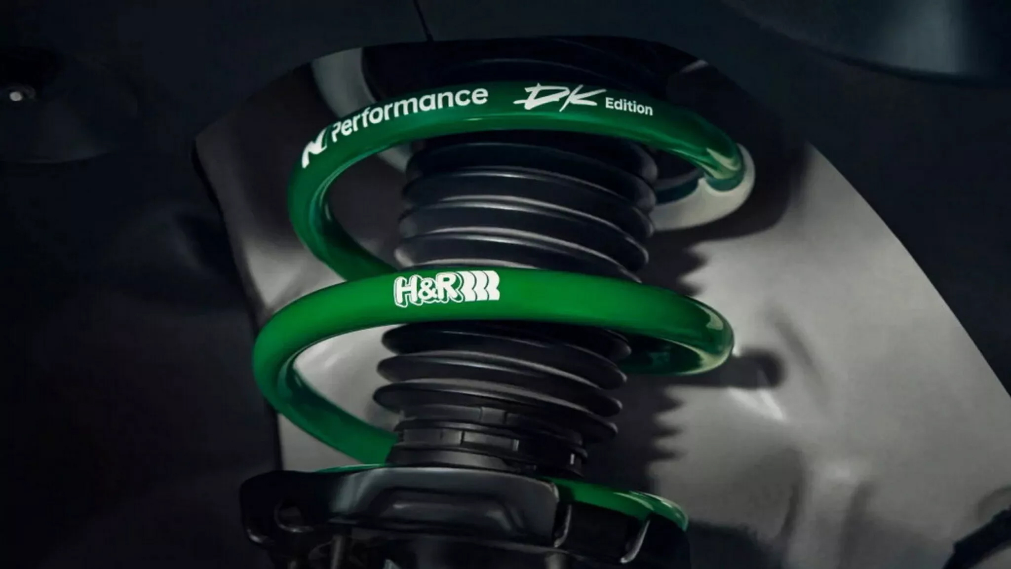 甩尾王特仕車透過更銳利的碳纖維空力套件彰顯獨特性,包括前下擾流板、側裙、後擴散器延伸套件以及天鵝頸式後尾翼。Hyundai聲稱,這些零件並非僅為外觀而設計,實際上能在時速 140 公里時就能增加93公斤的下壓力。東京車展上亮相的車款為消光白色塗裝,搭配深色亮面細節與低調的綠色點綴。車身C柱與尾門上皆有“DK Edition”徽章,而最引人注目的是全新鍛造的 21 吋輕量化輪圈,減少 10.6 公斤的簧下重量,進一步提升操控性能。