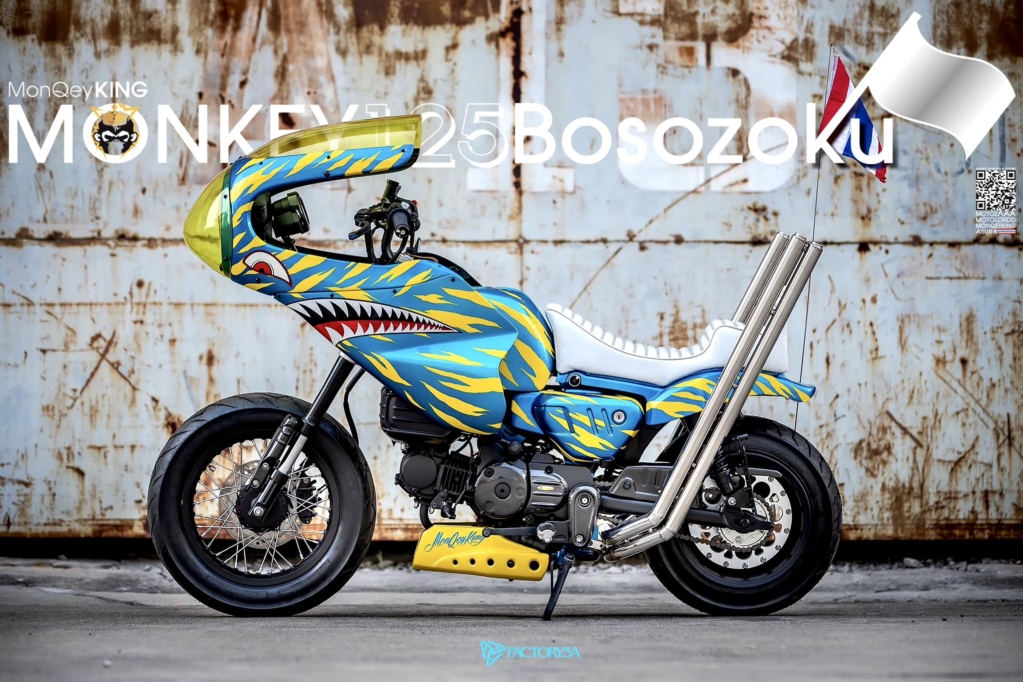 Honda Monkey 125在泰國已成為改裝界的明星車款,結構簡單、價格親民,為改裝提供無限可能。Advanced Automotive Accessories專注於打造各式外觀套件,包括越野風、軍事風與暴走族風,讓日本次文化在泰國重獲新生。