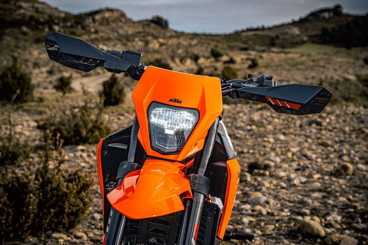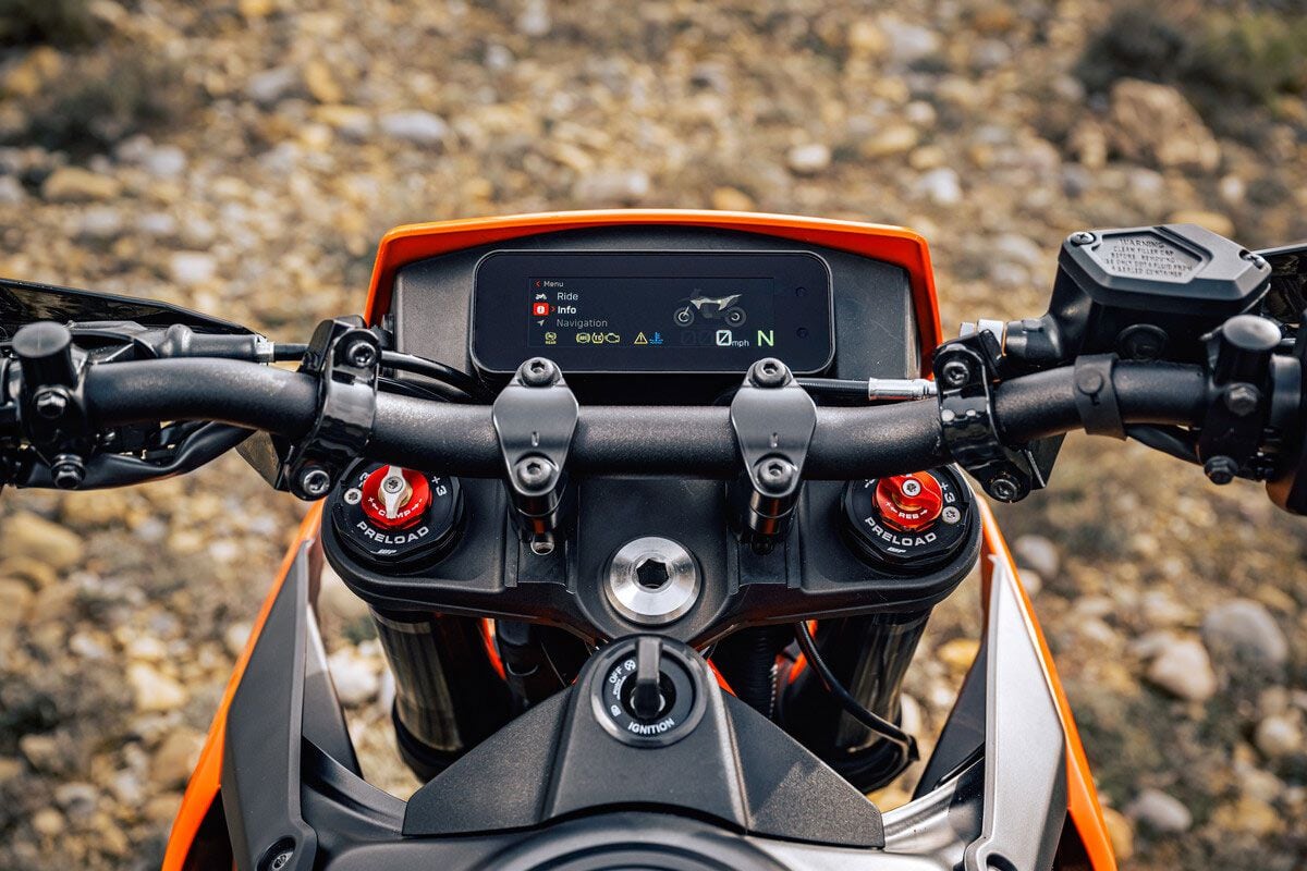 懸掛系統方面,WP Apex 前叉具備壓縮與回彈阻尼調整功能,行程長達 230MM;後避震器則為無連桿設計,具備預載與回彈調整,同樣提供 230MM 的行程;全新的 4.2 英吋全彩 TFT 儀表板,具有抗眩光塗層,支援 KTMconnect 應用程式,可用於音樂控制、導航以及來電通知。夜間操作無需擔心,車把上的四向搖桿具備背光設計。