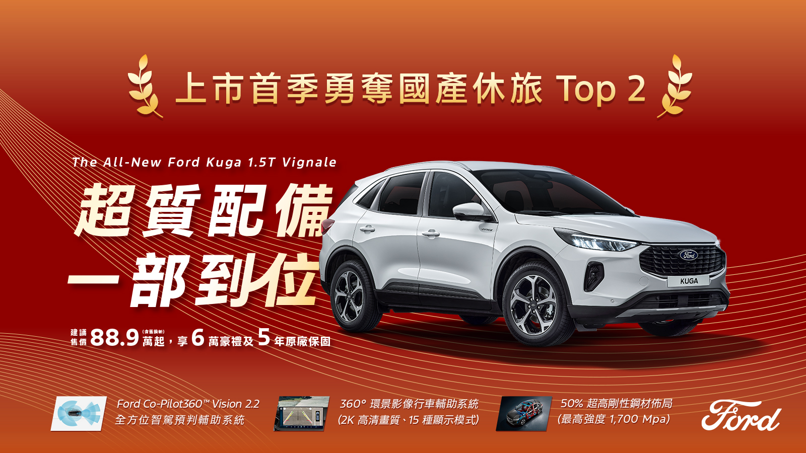 動力配置上,提供1.5T與2.0T EcoBoost MPC模組化引擎,結合源自福特集團豪華品牌Lincoln Corsair的全新8速自排變速箱,輸出分別達到187ps與255ps;採用歐規C2底盤平台、輕量化鋁合金懸吊結構與德國馬牌新一代EBB電子煞車系統,達成操控靈敏度與乘坐舒適性的絕佳平衡,並配備多達5種駕駛模式,靈活應對不同路況需求。另外,Kuga更導入最新「AI預判型智能科技」,舉凡以100°先進前攝影鏡頭與整合式ADAS控制模組所打造的「Ford Co-Pilot360TM Vision 2.2全方位智駕預判輔助系統」,與多達126顆LED晶片和96組獨立照明元件所組成的「Ford Pixel AI預判型動態照明系統」,兩大AI系統提供全方位智能安全防護,並結合原廠圖資洞悉前方路況,確保駕駛與乘客安心無虞。