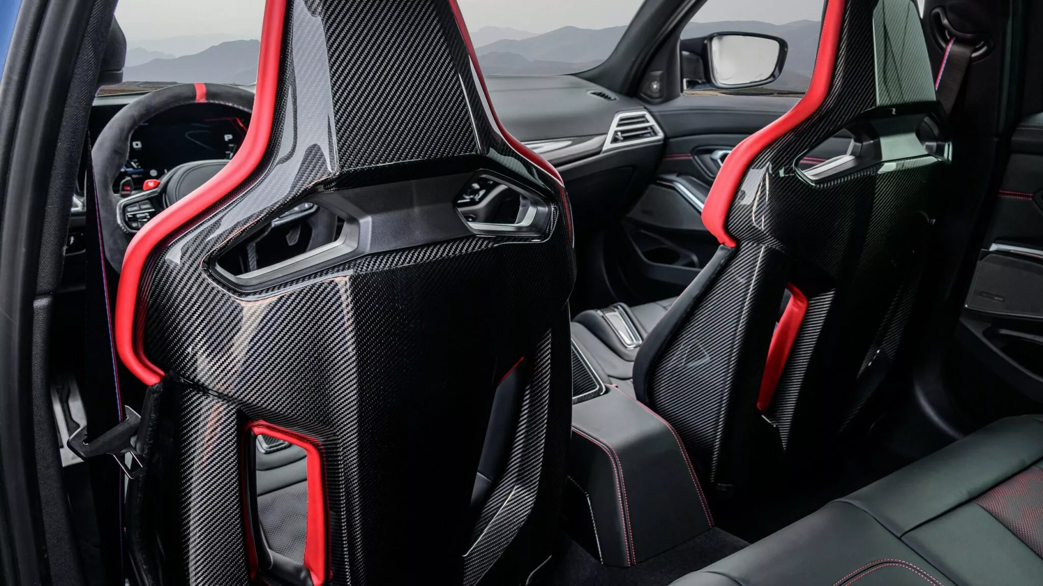 M3 CS Touring 標配 M Carbon 碳纖維桶型座椅,具備電子調整與加熱功能,座椅上更飾有專屬 CS 發光徽飾,彰顯特殊身份。此外,車內搭載 M Alcantara 方向盤,提升握感與運動氛圍,細節處處展現 BMW M 部門的專業造車工藝。