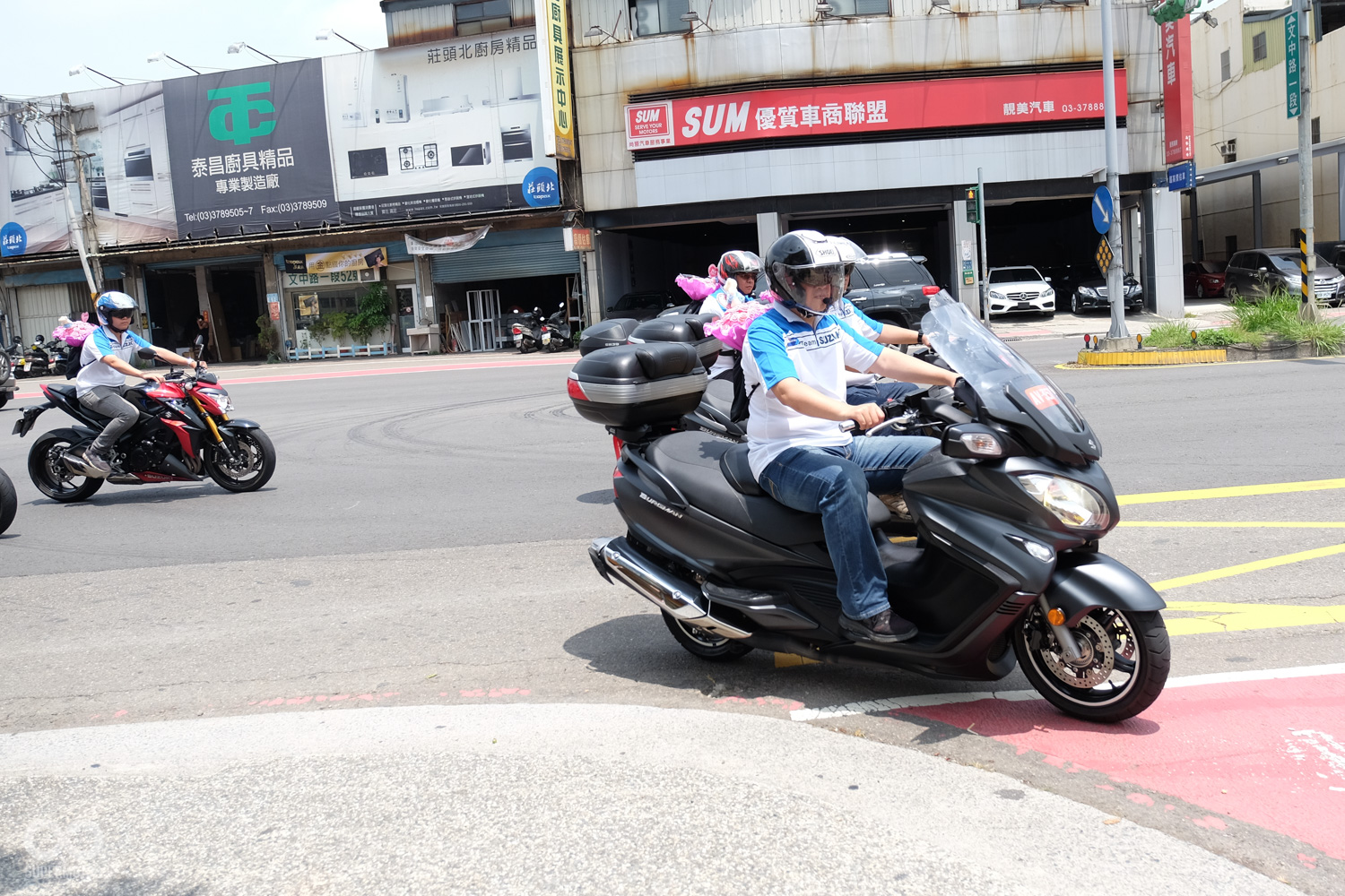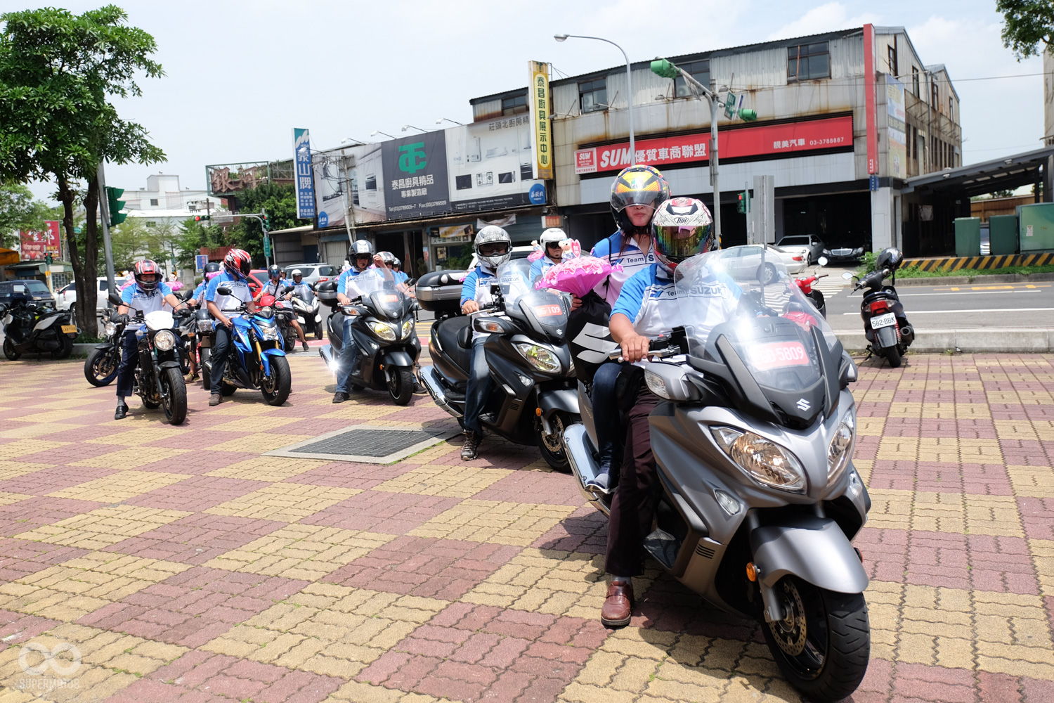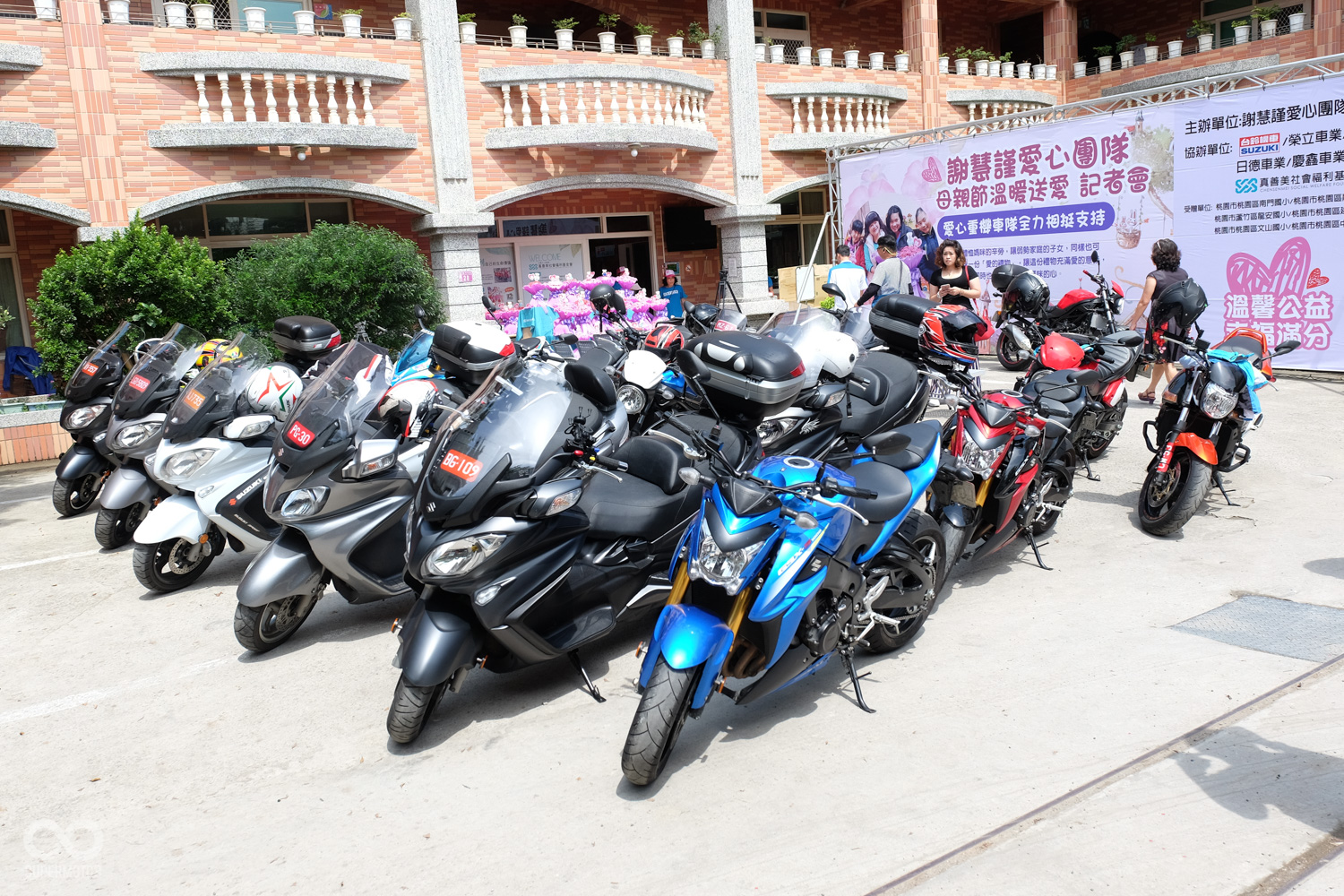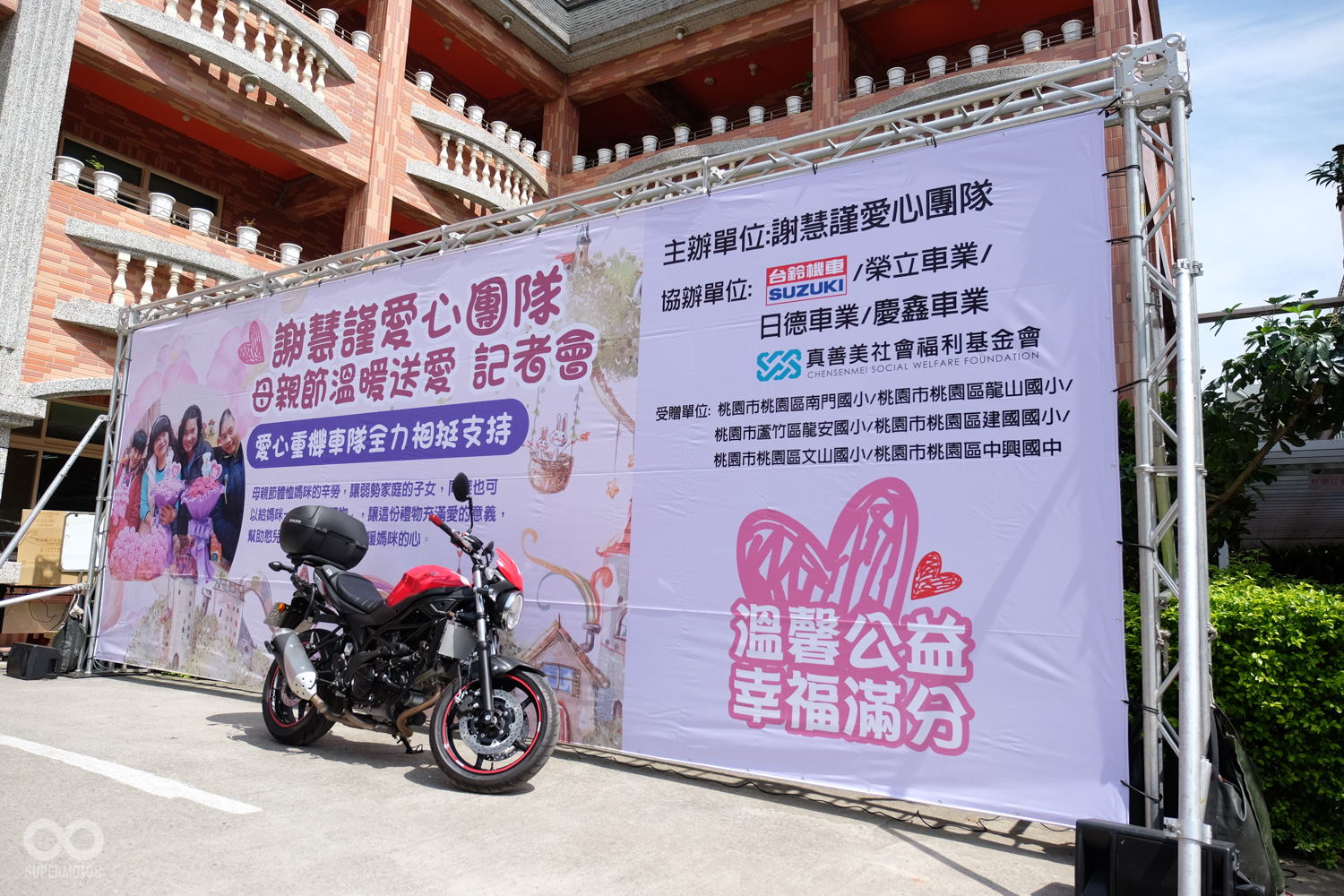頂著豔陽,SUZUKI車隊從中壢的善美社會福利基金會出發,歷經近半小時的車程浩浩蕩蕩地抵達了位於桃園的龍安國小,縱使中午的烈日毫不留情,但這仍無法動搖騎士們的熱血;龍安國小校長林秀穗表示:「非常開心龍安國小是愛心花束站其中一站,讓學生們能有機會看到送愛重機騎士,給了孩子們一個特別而難忘而充滿愛的母親節。」而該里龍鳳里里長黃進仕則代表受惠里民也前來向謝慧謹團隊及SUZUKI重機車隊表達感謝。