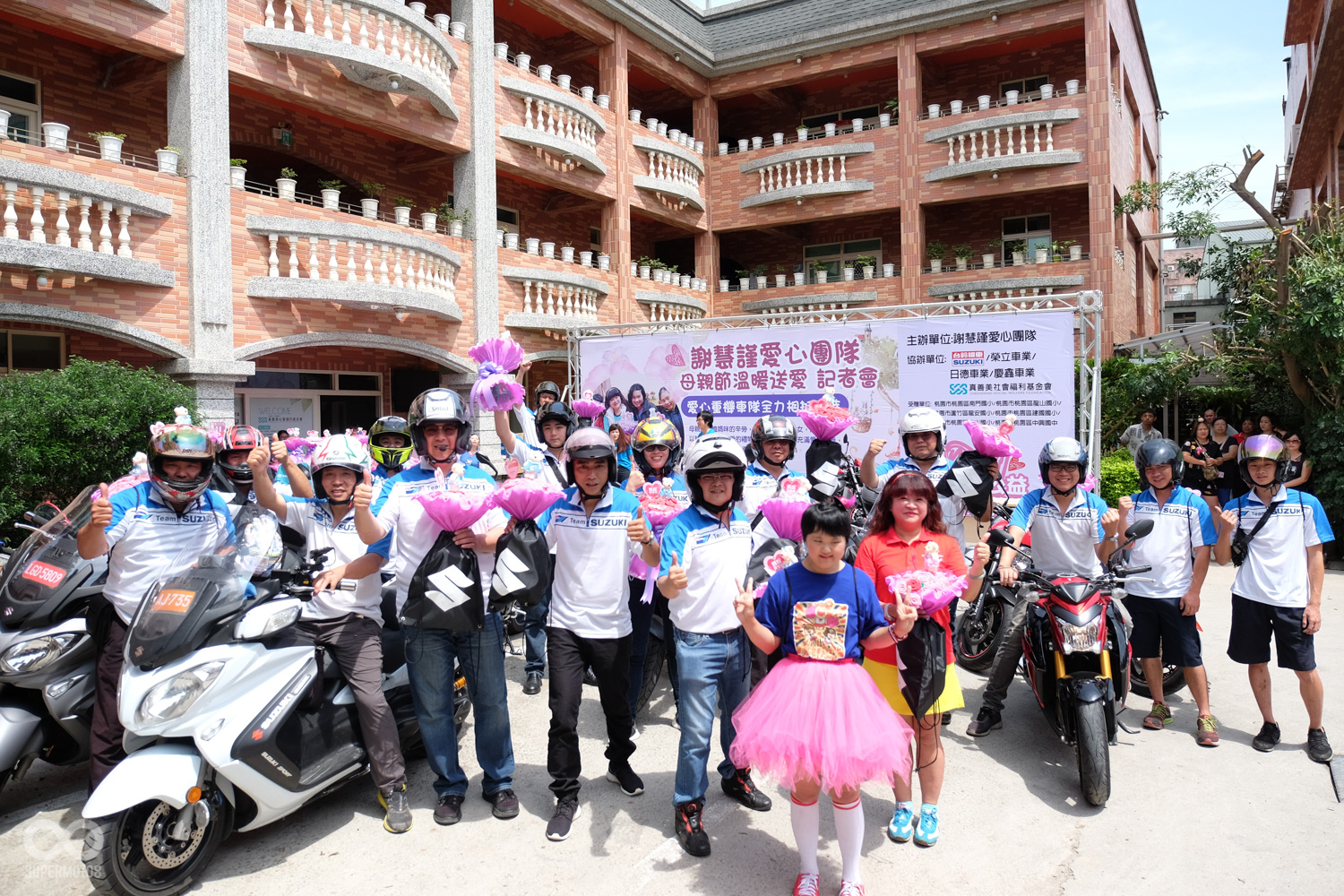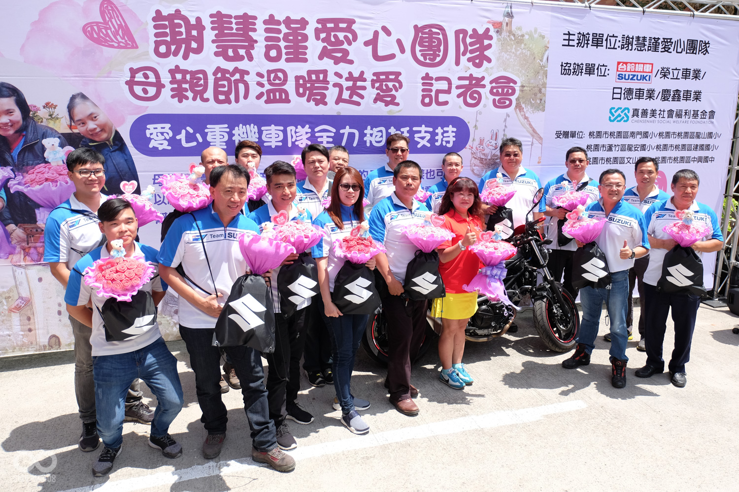 愛心團隊的發起人謝慧謹激動地表示:「感謝SUZUKI重機車隊願意主動擔任送花車隊,促此次成愛心送花的活動,看到憨兒們努力折花卻賣不出去,及弱勢孩童們母親節到了,卻沒有能力購買禮物給媽媽而煩惱不已,感覺心疼不捨,因此將這二件好事結合在一起,就能夠可以幫助憨兒和弱勢孩童有個幸福的母親節。」