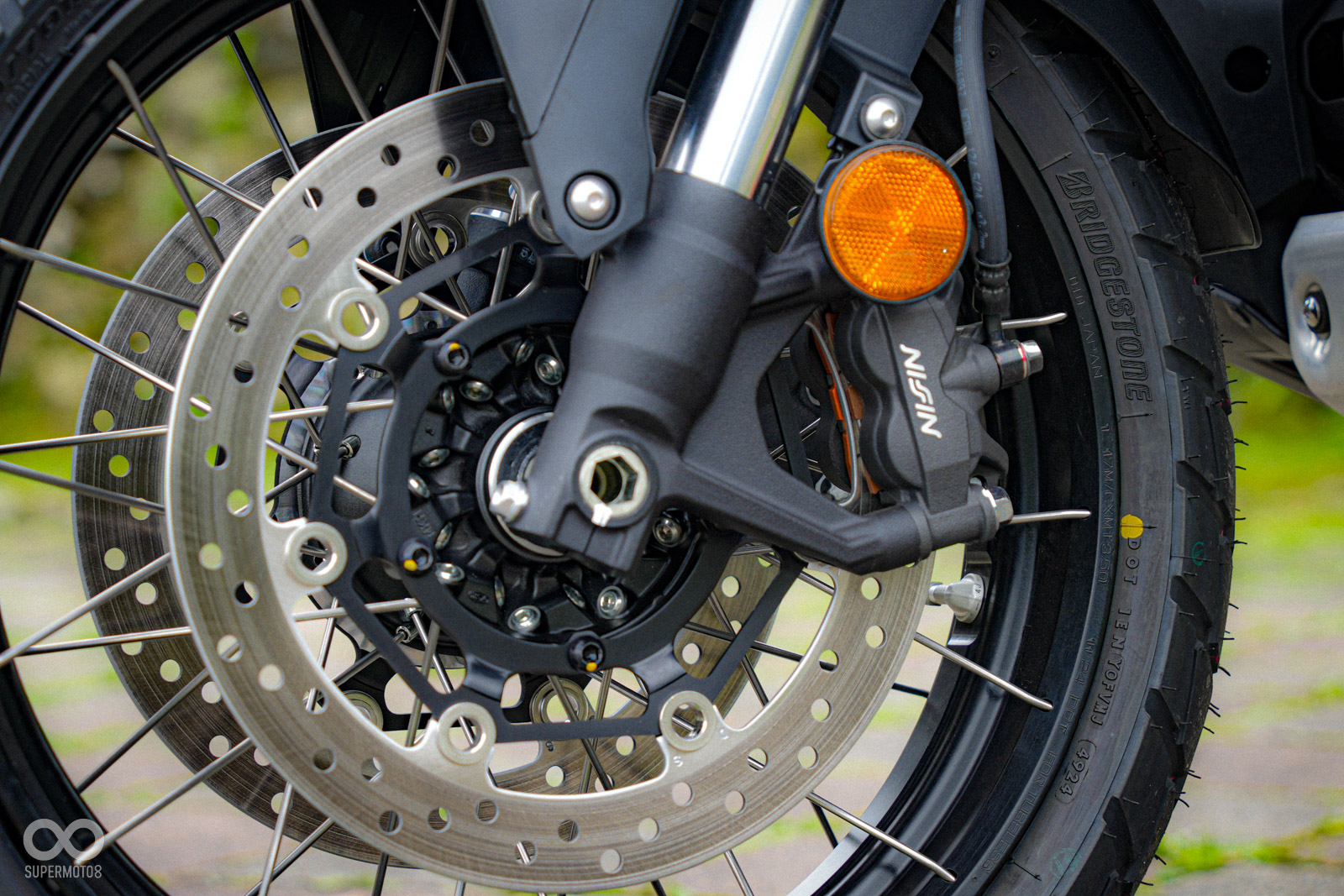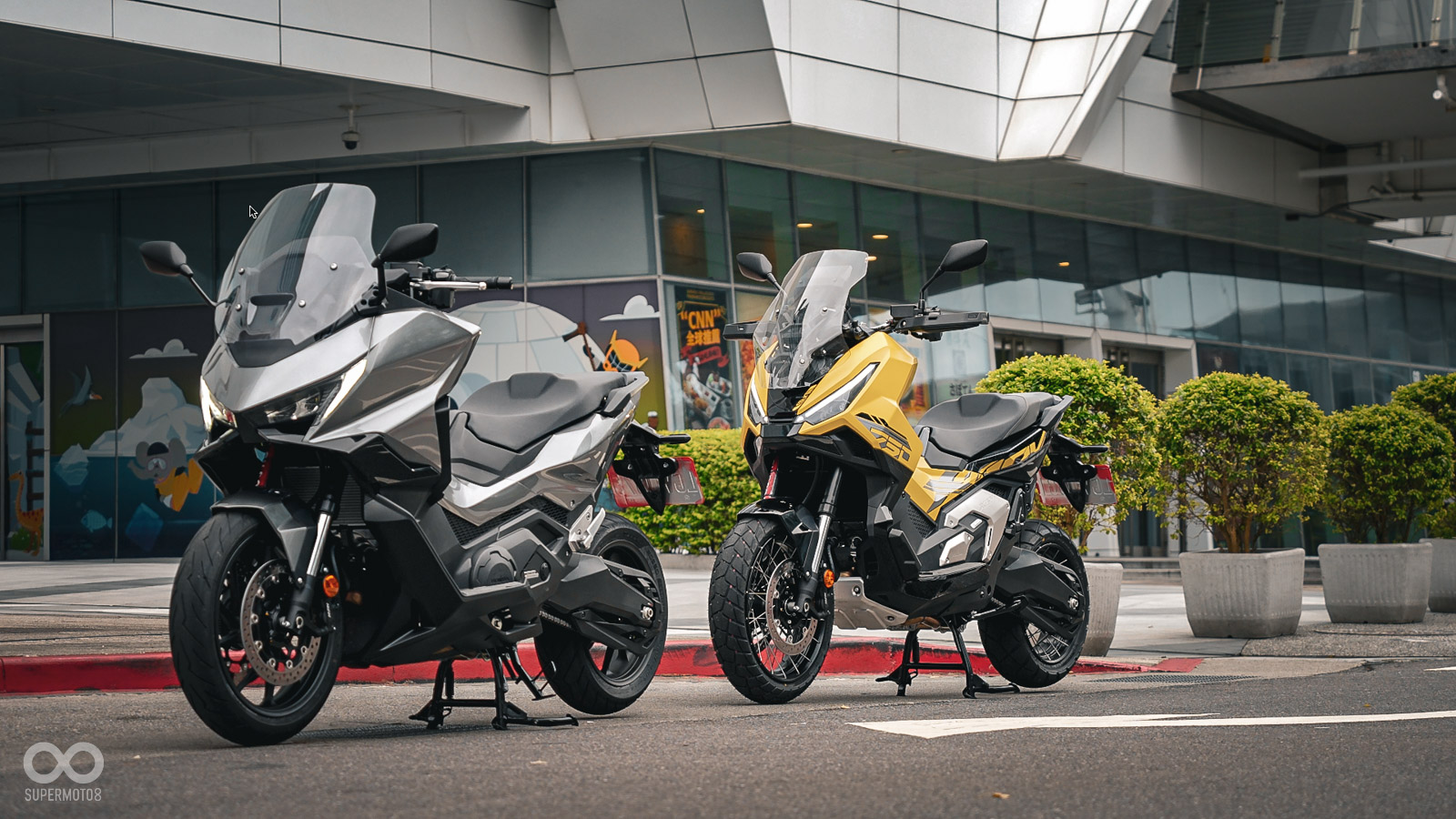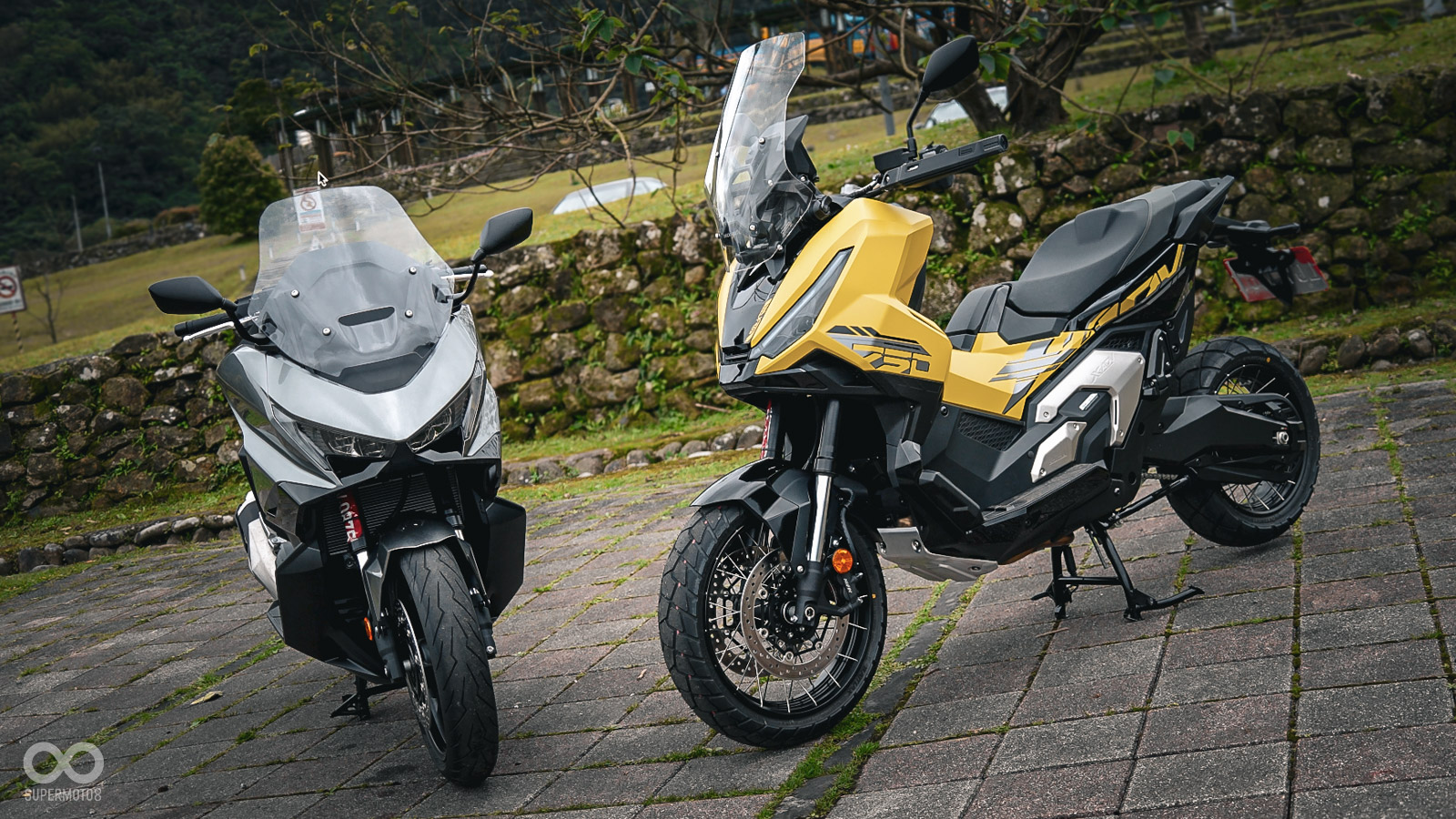 FORZA750則是搭載SHOWA SFF-BP 41MM倒立式前叉,配上多連桿單槍後避震,有10段預載可調,前後懸吊行程皆為120MM;煞車部分,兩台車都採用NISSIN的四活塞輻射卡鉗、後單活塞卡鉗的設定;車重、座高部分,X-ADV的車重為237公斤、座高820MM,而FORZA750的車重為236公斤、座高790MM。