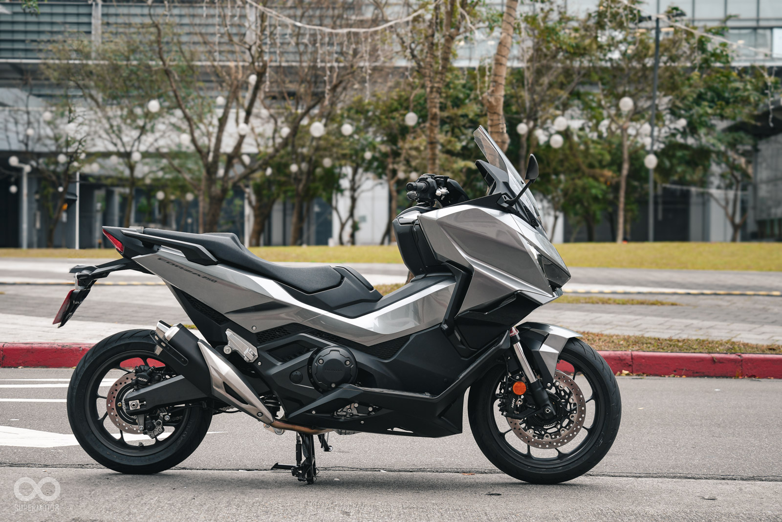在車身中、後半段部分,兩款車基本都維持和過去差不多的線條感受,X-ADV仍然採用很多不同元素的塊狀拼貼,打造出濃烈的跨界元素,配上前後鋼絲輪框和加長的懸吊,讓整台車看上去一整個野性十足;FORZA750則是以比較柔和、流線的車身曲線,營造出都會感十足的樣貌,這次改款也同步換上全新設計的輪框,加上車身部分巧妙的利用些許俐落的線條刻畫,帶出優雅又熱血的氣質。