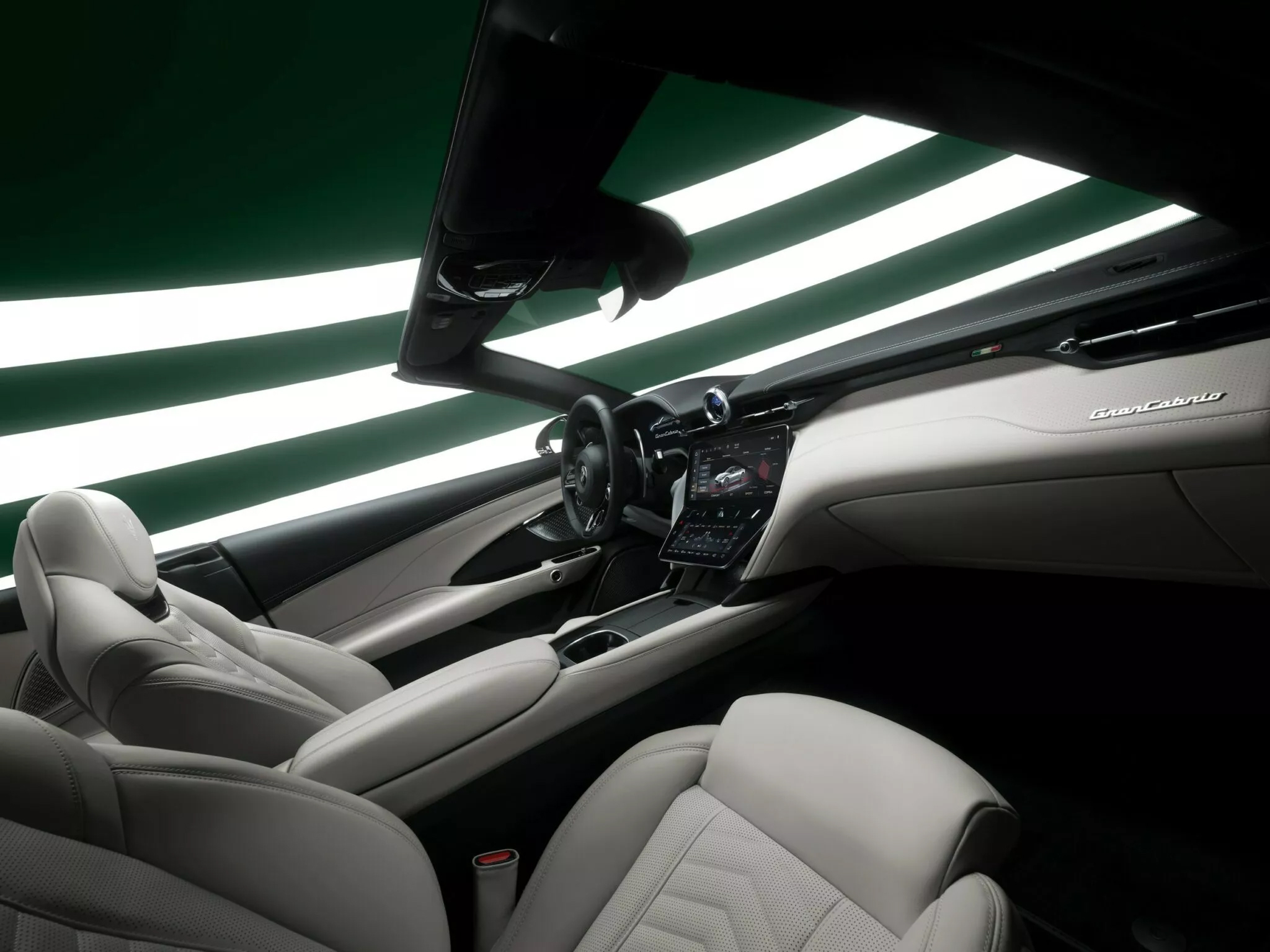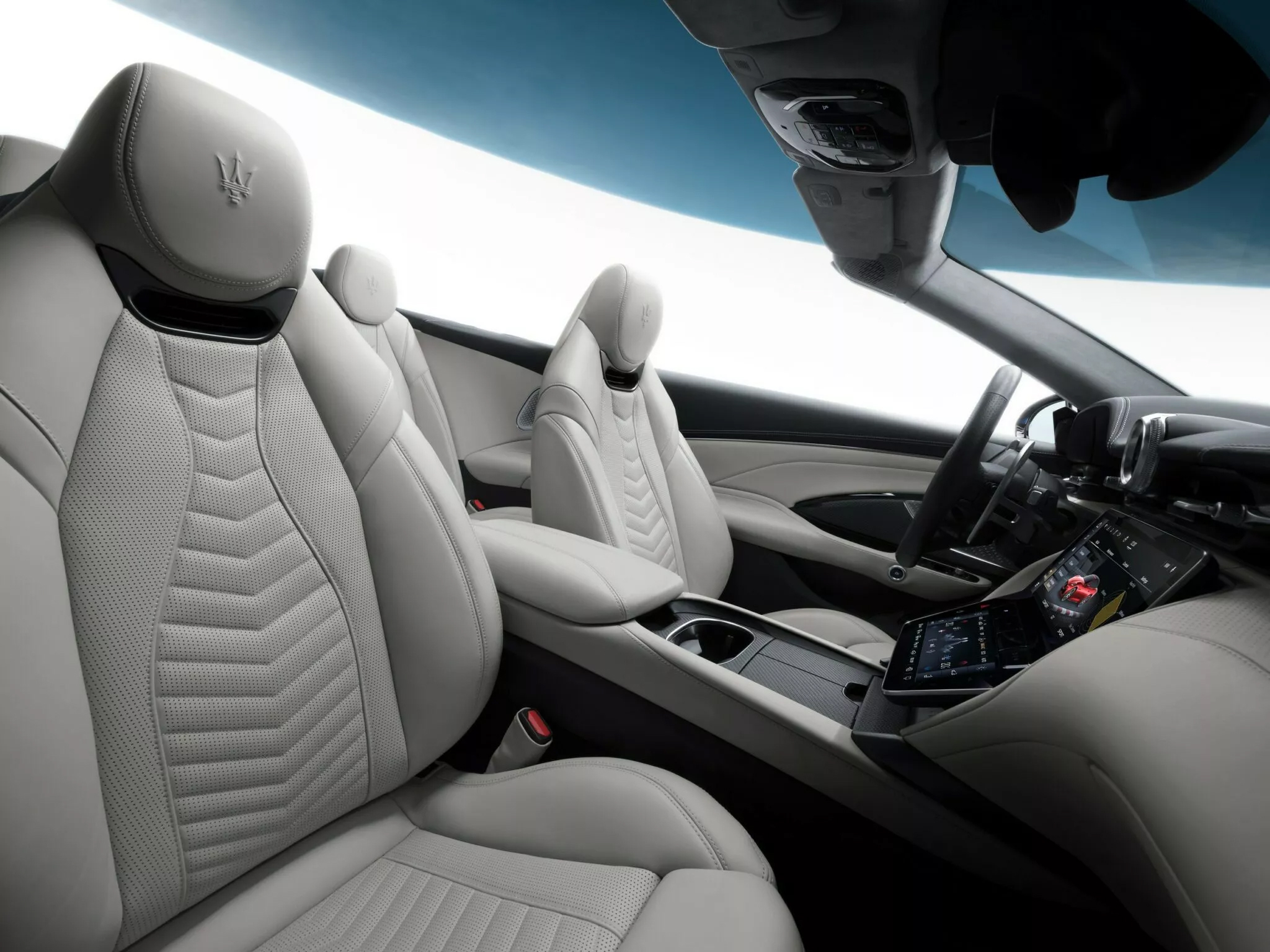 這款獨一無二的 GranCabrio Trofeo ICE 以「冬日魅力」為設計理念,採用 Liquid 三層特調漆面,營造出類似冰湖的光澤感,並搭配亮白色飾條及鍛造輪圈,內側則配備亮藍色卡鉗,進一步強化冷冽的視覺效果。