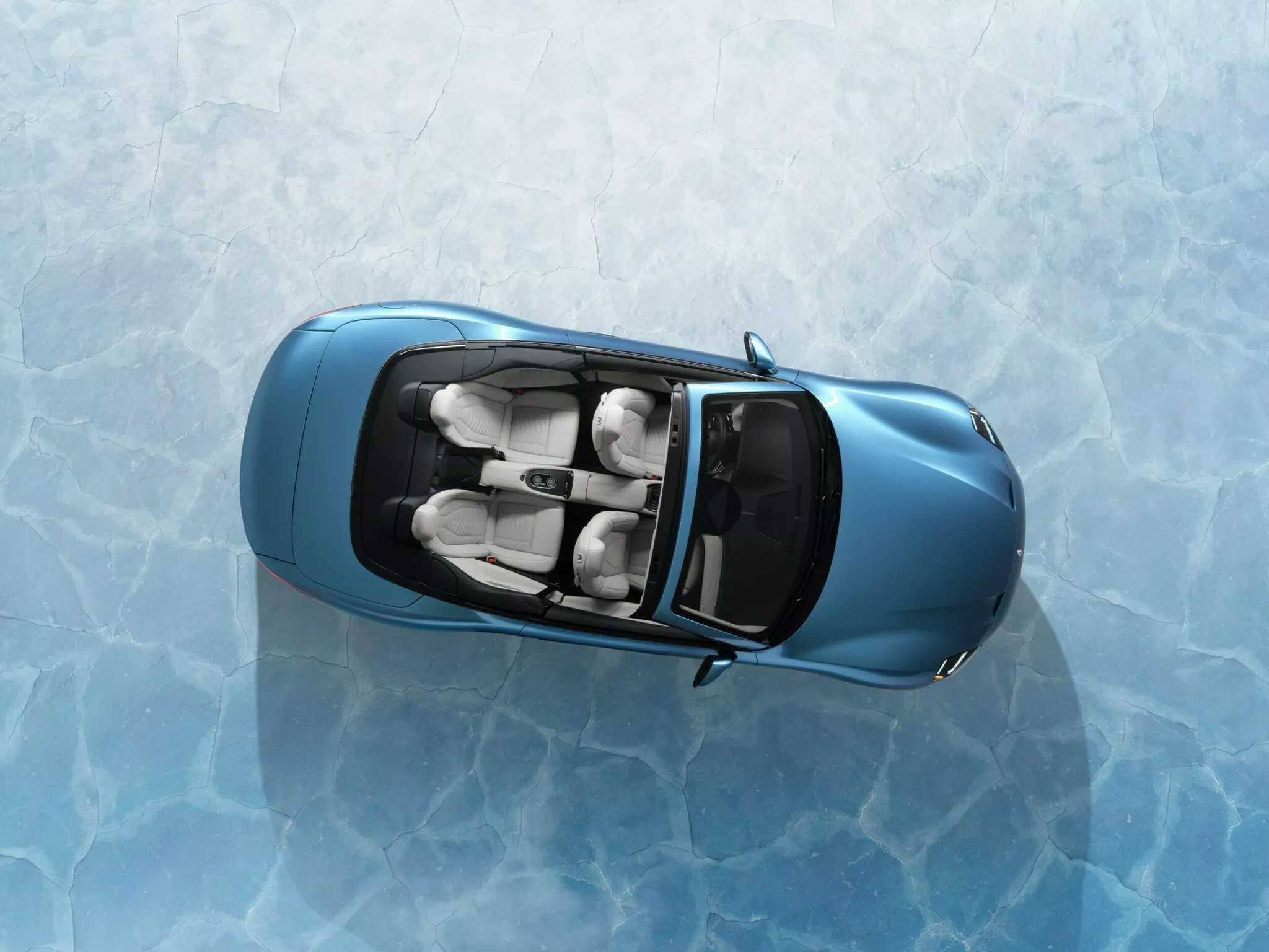 車頂則選用藍色軟篷,而內裝則以冰白色為主,搭配對比鮮明的黑色飾板,並輔以碳纖維細節,營造出獨特且高級的質感。