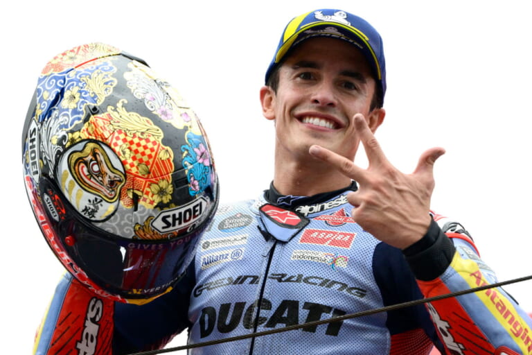 2024 年賽季,Márquez 從 Repsol Honda 轉戰 Gresini Racing,改騎 Ducati 並成功奪下年度第三名,展現驚人實力。而這款最新的 MOTEGI5 安全帽正是他在 2024 MotoGP  日本站上佩戴的版本。