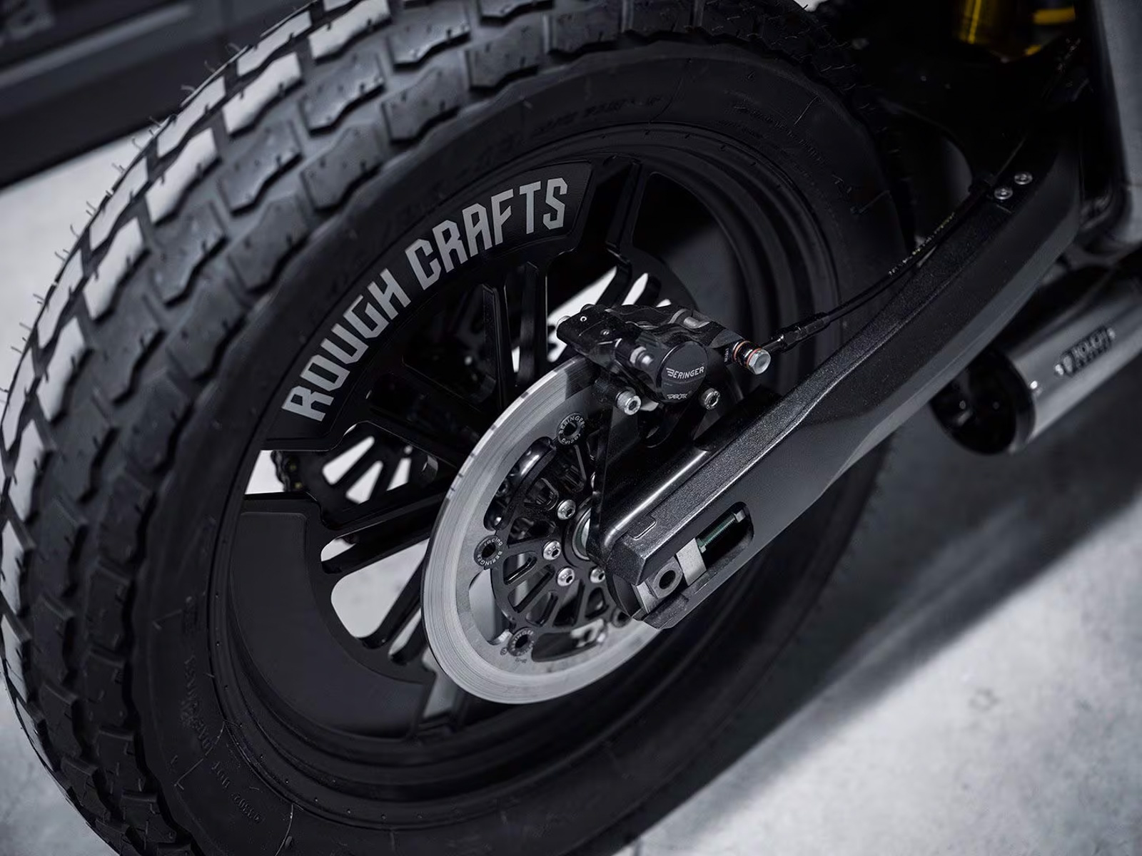 至於煞車部分,Beringer 高性能制動系統登場,前輪搭載 320mm 六活塞超級摩托煞車組,後輪則搭配 267mm 兩活塞輻射式卡鉗,皆由 Rough Crafts 特製固定座安裝,確保煞車反應迅速且穩定。