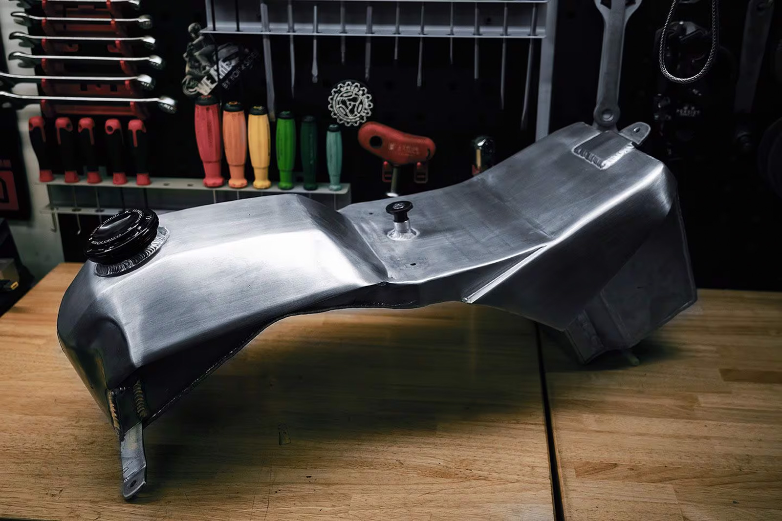 首先,Ténéré 的鋼製副車架被移除,換上 YZ450F 的鋁製副車架,這讓 YZ 的塑膠外殼能夠無縫安裝。Faber Studio 1F 重新整理電線束,精簡至最純粹的必要元件,確保輕量化不失功能性。而油箱部分,JZO Crafts 創造了一個全鋁合金手工油箱,將 Ténéré 和 YZ450F 的車架結構完美融合,提供 6.8 公升的油箱容量。