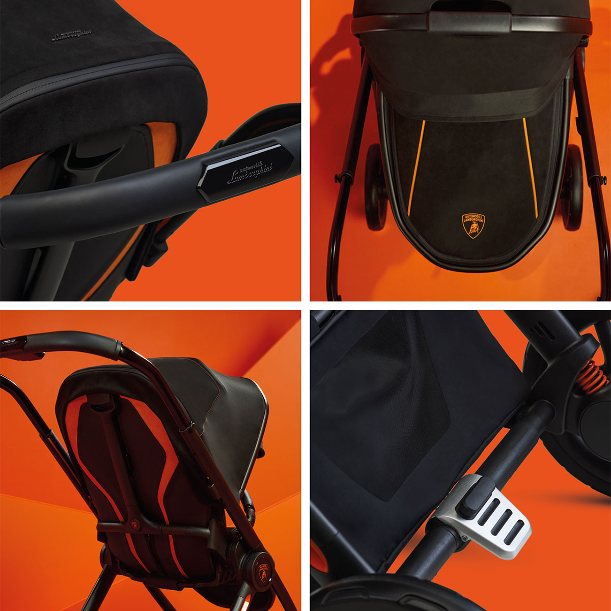 這台嬰兒推車不僅承襲了Lamborghini的速度感,更結合了Silver Cross這家嬰兒推車界的百年大師品牌,將其奢華工藝完美融入。從高性能面料、流線型的座椅設計到以超輕量化聚碳酸酯製成的嬰兒搖籃艙,每一處細節都在告訴你:這可不是一般推車,這是給寶寶們的「賽道專用座艙」!