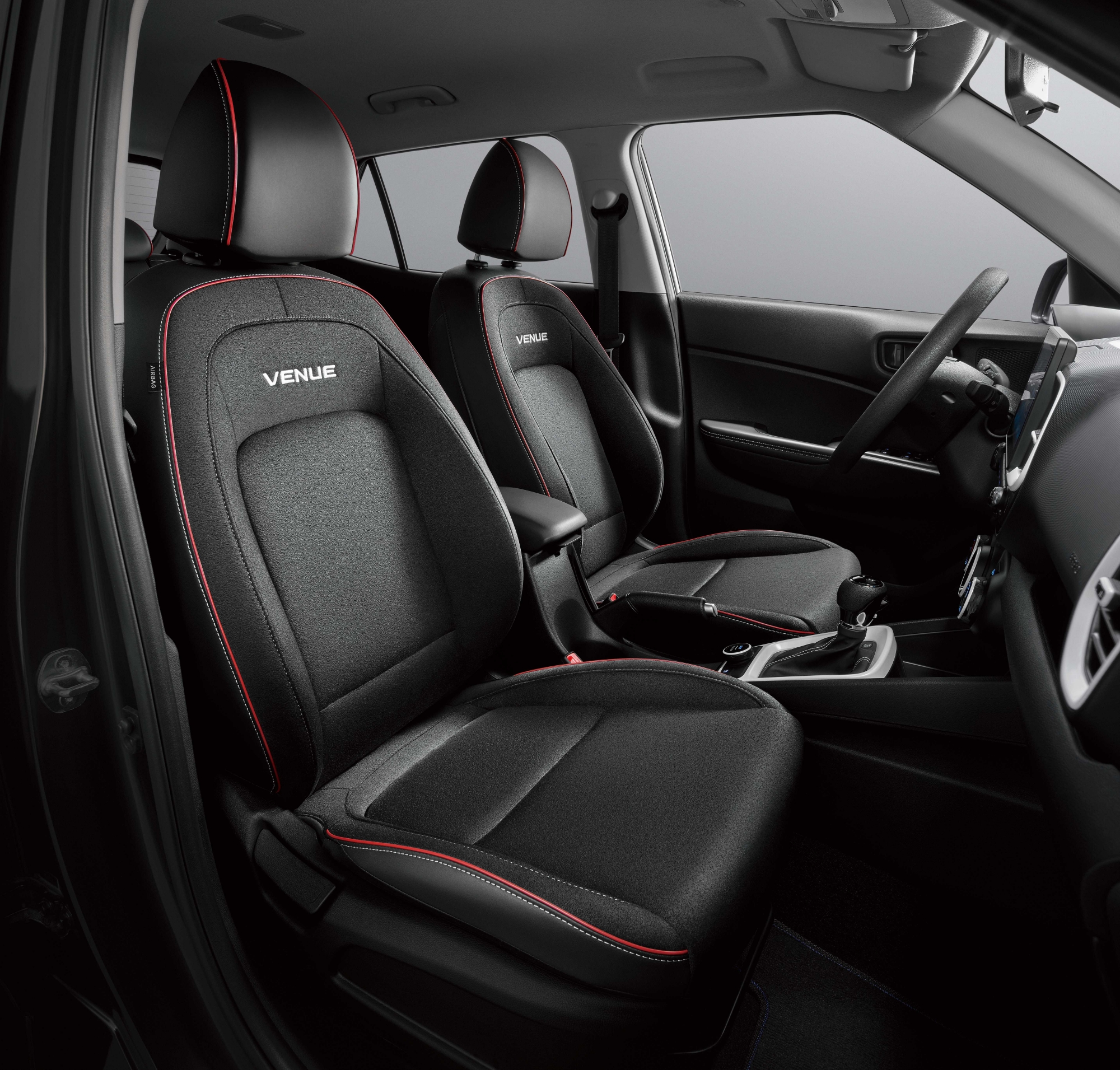 VENUE R&B瑞德黑在外觀上大膽採用消光黑鋁圈與紅色雙色套件,展現無可忽視的視覺衝擊力。黑與紅的完美融合,不僅突顯運動感,更讓駕駛者能夠自由展現自我風格。VENUE R&B瑞德黑更搭載紅色車頂、紅色後視鏡、車門把手與雙色個性套件,並配備紅色運動化尾翼與專屬R&B徽飾,進一步強化酷炫運動感。內裝設計同樣延續R&B精神,採用經典黑色內裝搭配類麂皮座椅,並搭配運動化配色座椅,紅色管條與灰色車縫線的細節點綴,使整體座艙更具跑格;而黑色皮質座椅不僅提供卓越的乘坐舒適性,更讓整體車室空間充滿高級感與運動氛圍。