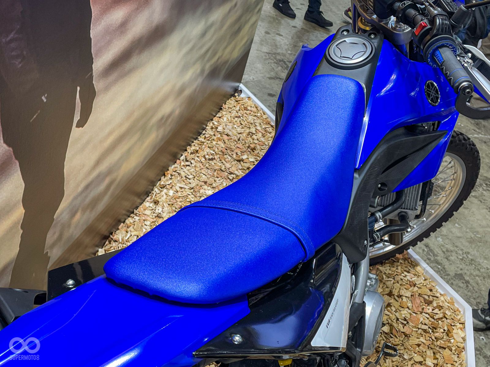這台概念車外型與現行亞洲販售的 WR155R 幾乎一模一樣,只是車名與引擎排氣量都被蓋住,讓人懷疑是否藏有玄機。現場看到的其實只是裝了手把護弓與泡棉握把的小改款,但搭配這神秘命名與保密操作,感覺就是 Yamaha 想對越野迷說:「我們還在!」