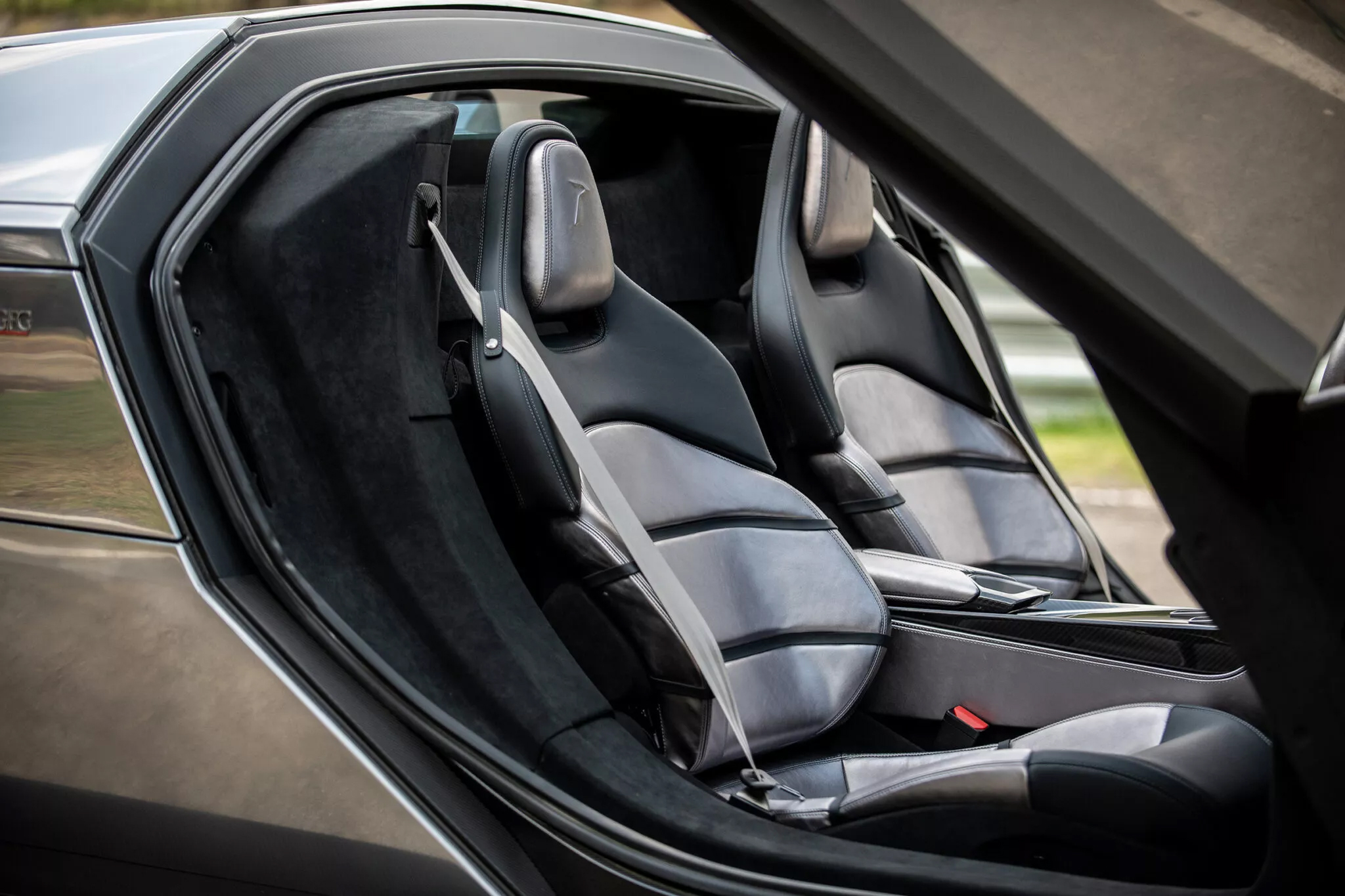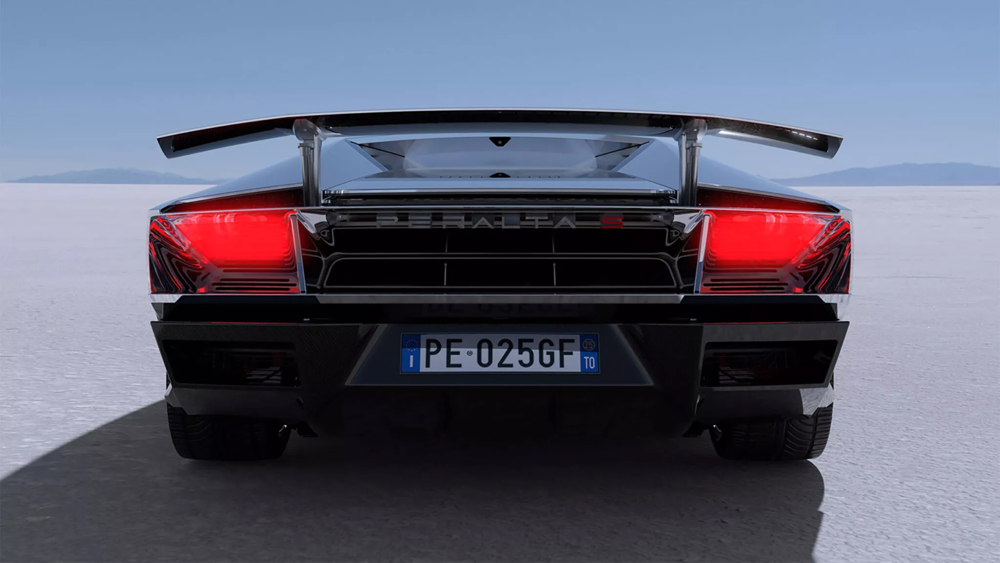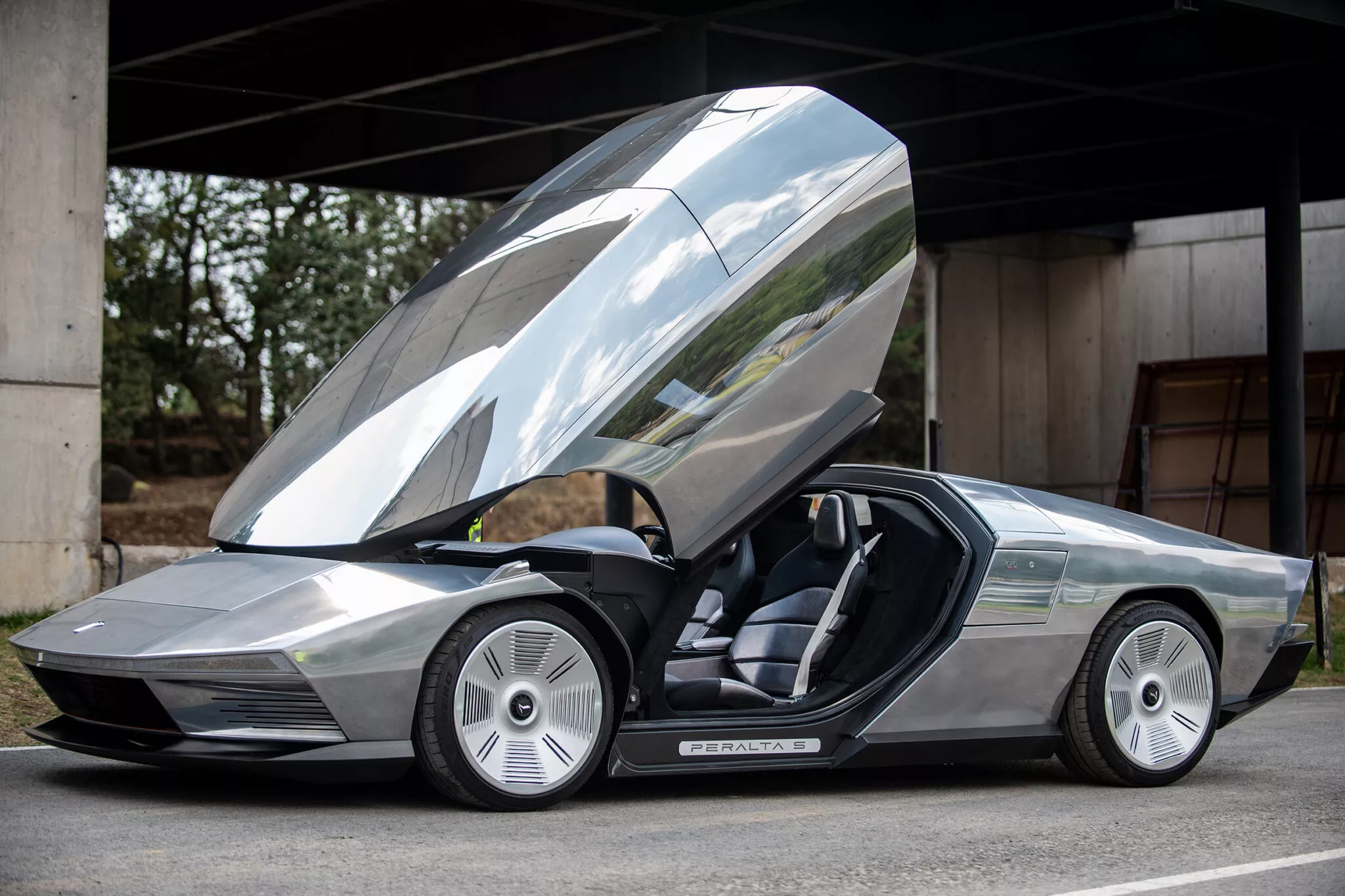 Peralta S的側窗可像小型鷗翼門 一樣向上開啟,而整個座艙則是 前掀式設計,讓駕駛與乘客能夠輕鬆進出車輛。車側進氣口、尾翼與尾燈造型隱約向Lamborghini致敬,但整體設計更加簡潔俐落。復古未來風格的輪圈、攝影機後照鏡與銳利LED頭燈,讓這輛車在奢華與現代感之間取得完美平衡。