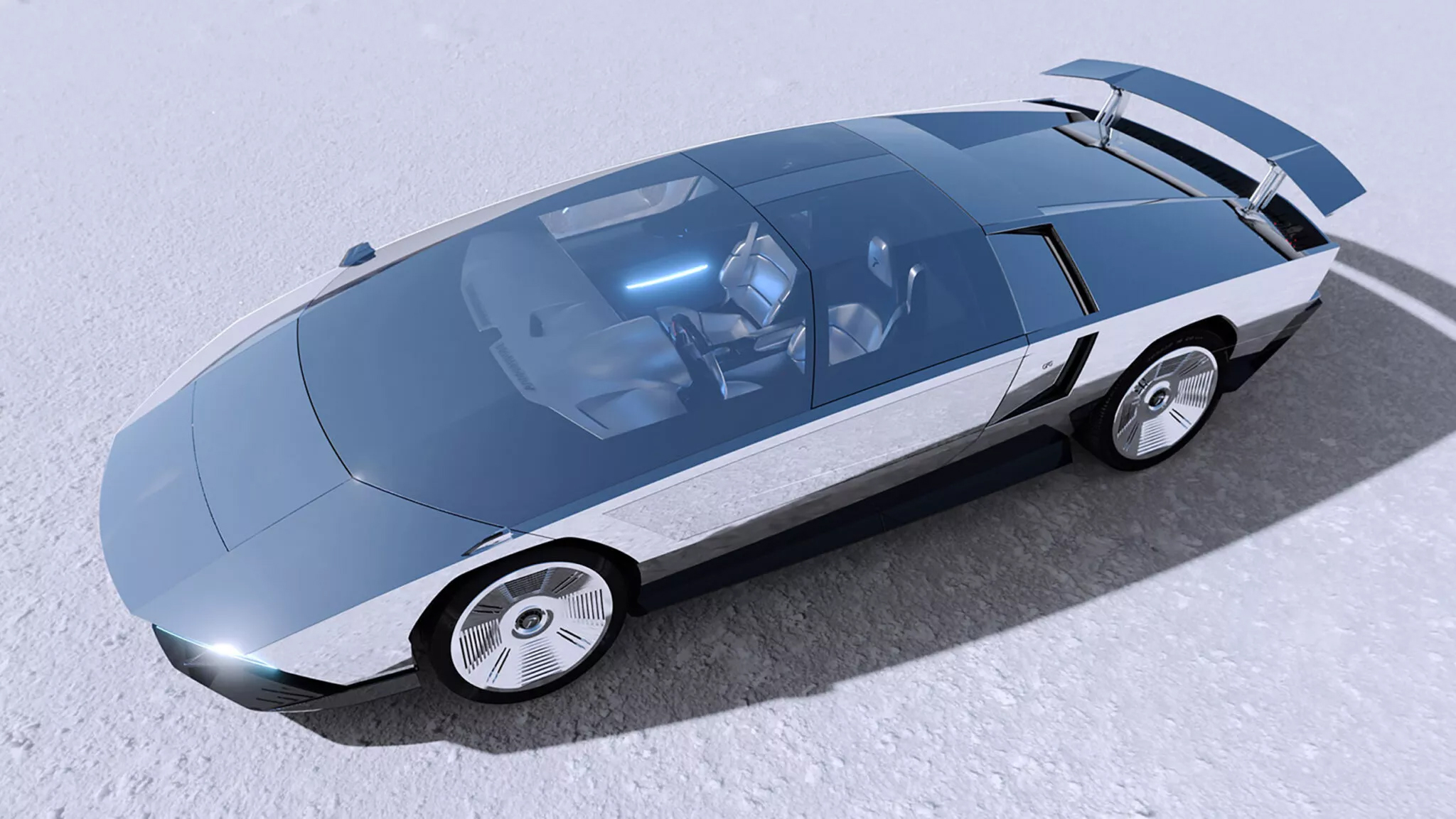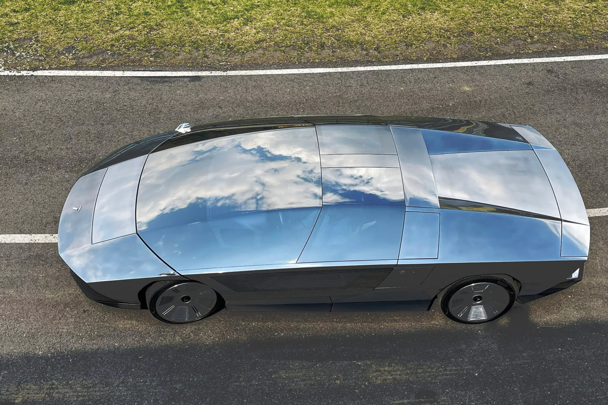車身全以手工打造,鋁合金表面經過鏡面拋光處理,與大面積玻璃無縫銜接,展現流線感十足的未來風格。車頂與車身形成一體式弧線,從車頭延伸至車尾,彷彿隨時準備劃破空氣般前行。