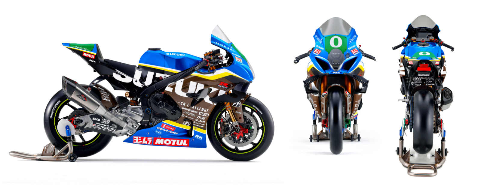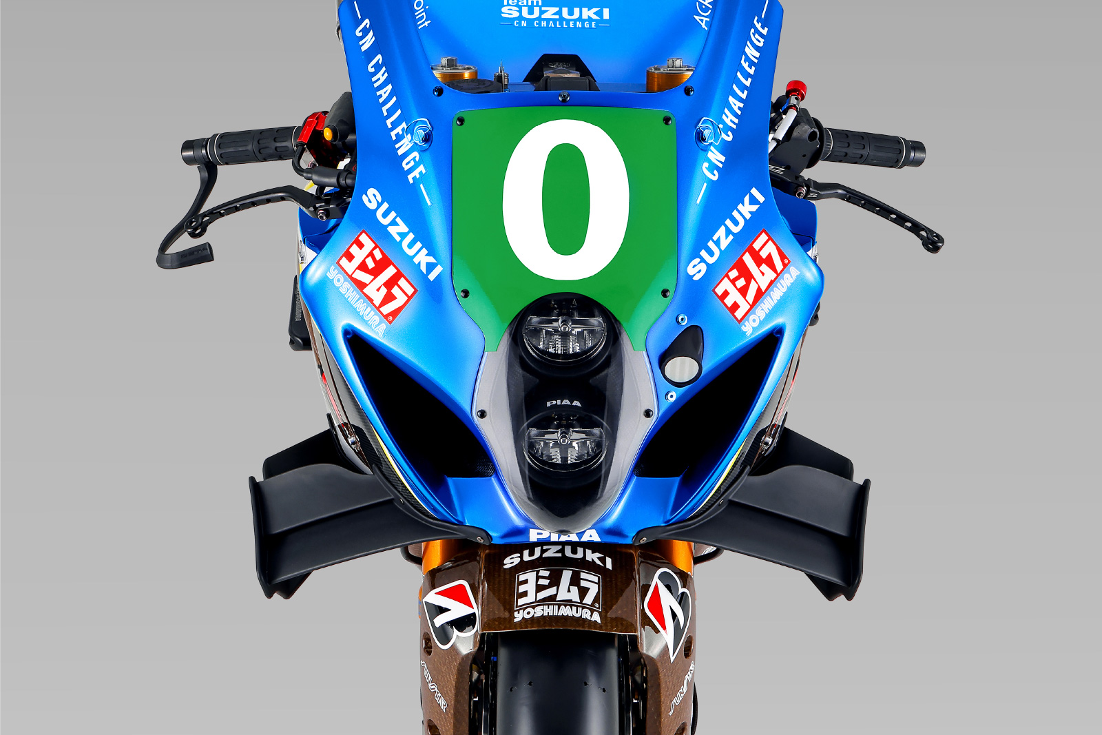 這次一併公開的還有新戰駒 GSX-R1000R 的全新賽車塗裝,以藍黑為主體,加入綠、黃、白等亮眼點綴,不僅有速度感,也強調未來導向的綠能形象。