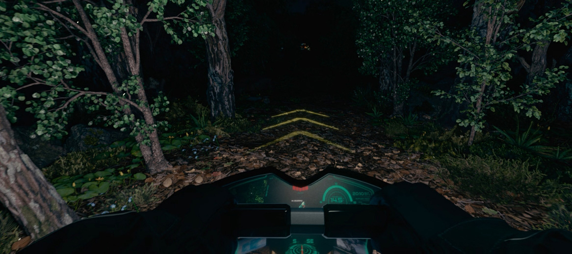 儀表板也很有摩托車風格,但川崎的願景更狂——它能在夜間把導航標記投影到地面上,有點像抬頭顯示器(HUD),只是外面的人也能看到。我不知道這有多實用,但拜託,這可是匹可騎的機器馬,實用性是你第一個想吐槽的點嗎?