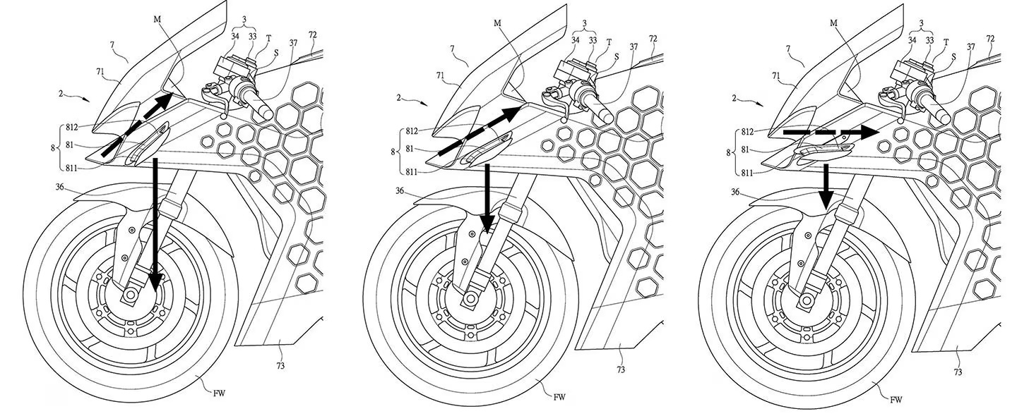 在 MotoGP,這種可動小翅膀雖被禁用,但 WSBK 等量產車比賽卻仍可使用。BMW、Honda、甚至 Bimota 都曾提出類似概念,現在連 KYMCO 也透過專利加入戰局,顯然未來的空力之戰,不只在賽道上發生,更要落實在市售車款上。