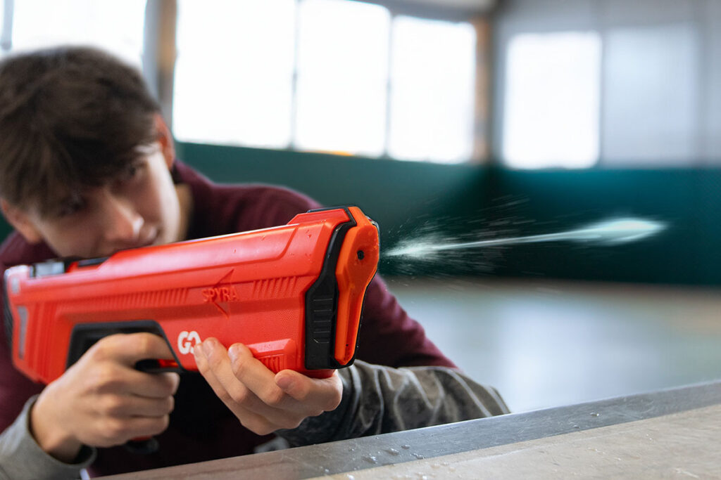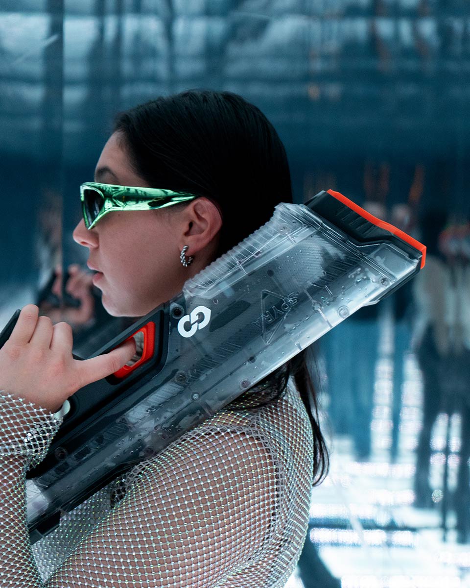SpyraGO加入了Spyra家族,和主打火力的SpyraThree以及專攻大範圍轟炸的SpyraGravity水彈發射器組成水戰夢幻陣容。SpyraThree是數位派玩家的大菜,Gravity則適合愛搞亂的狂熱分子,而SpyraGO走的是輕巧靈活路線,完美適合想快速開戰又不想大包小包的你。簡單說,這把水槍就是「小而美」,但噴起來絕對有大將之風!