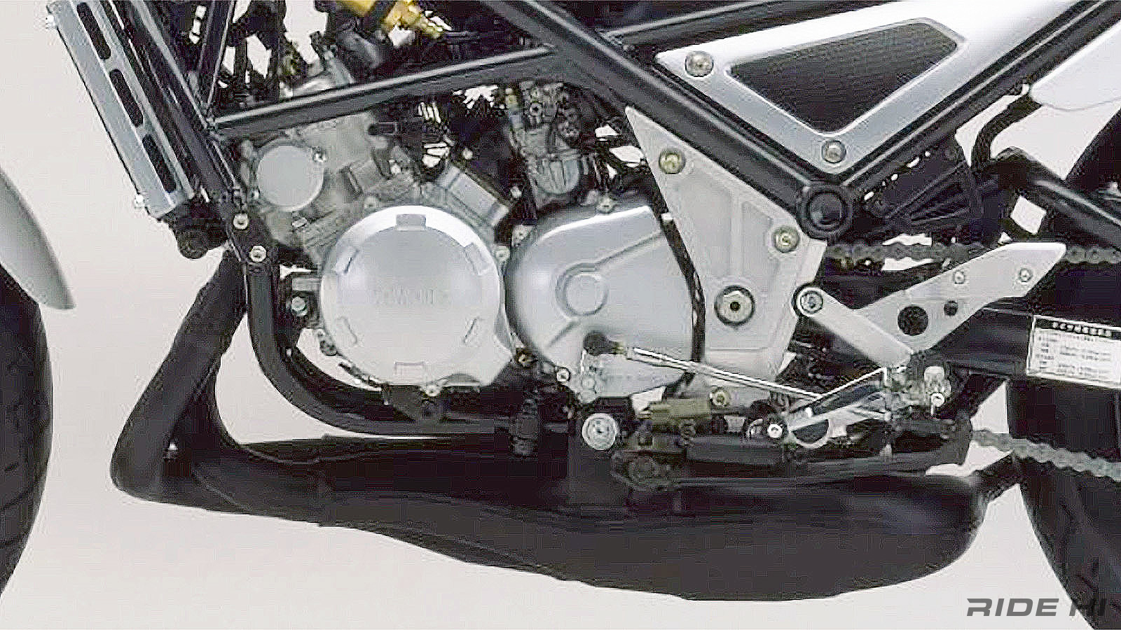 除了輸出兇猛,它的吸氣系統也很講究。搭載Y.E.I.S.吸氣擴壓室、Y.P.V.S.可變排氣閥系統,搭配大容量的排氣膨脹室,整體出力曲線不只炸,還很有厚度。而那個交叉雙出排氣管、一體式鋼管車架加上拉長的油箱設計,整台車視覺上就像個賽道裡不笑的壞小子,完全走硬派路線。