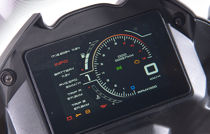 騎乘儀表是充滿科技感的5吋TFT彩色液晶螢幕,不僅能透過藍牙連結手機,還有免鑰匙啟動、胎壓偵測、USB充電插孔,這價位給到這些配備,真心不愧是「親民價格大滿配」。
