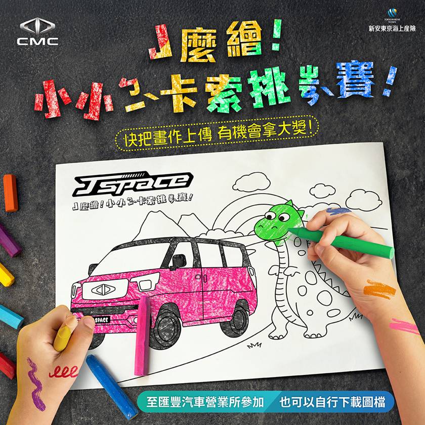 除了萌翻的饅頭家族,以20種炫目雙色廣受好評的J SPACE還將舉辦「小小ㄅㄧˋ卡索挑ㄓㄢˋ賽」,邀請大小朋友發揮創意為恐龍和小J車塗上夢幻色彩,不只塗滿童趣,更有機會實現創意打造專屬的雙色車款!即日起至6月8日至三菱粉絲頁PO文上傳著色作品(https://reurl.cc/NYEm36),就有機會獲得$8,000元超商禮卷,歡迎創意無限的你至全台匯豐汽車展示中心或自行下載J SPACE著色紙(https://reurl.cc/gRldnN),展現你獨一無二的繽紛創意。
