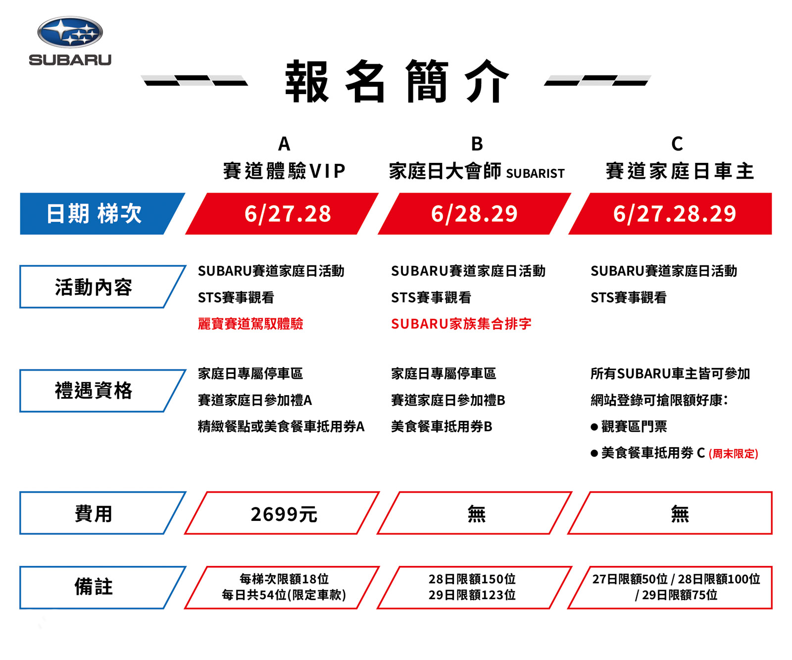 SUBARU 年度重頭戲「2025 SUBARU 賽道家庭日」即將於6月27~29日隆重登場,同時也在此時預告,報名網站將於 5月21日早上9點開放、歡迎全台所有SUBARU車主與熱愛駕馭的朋友們踴躍登記參加。