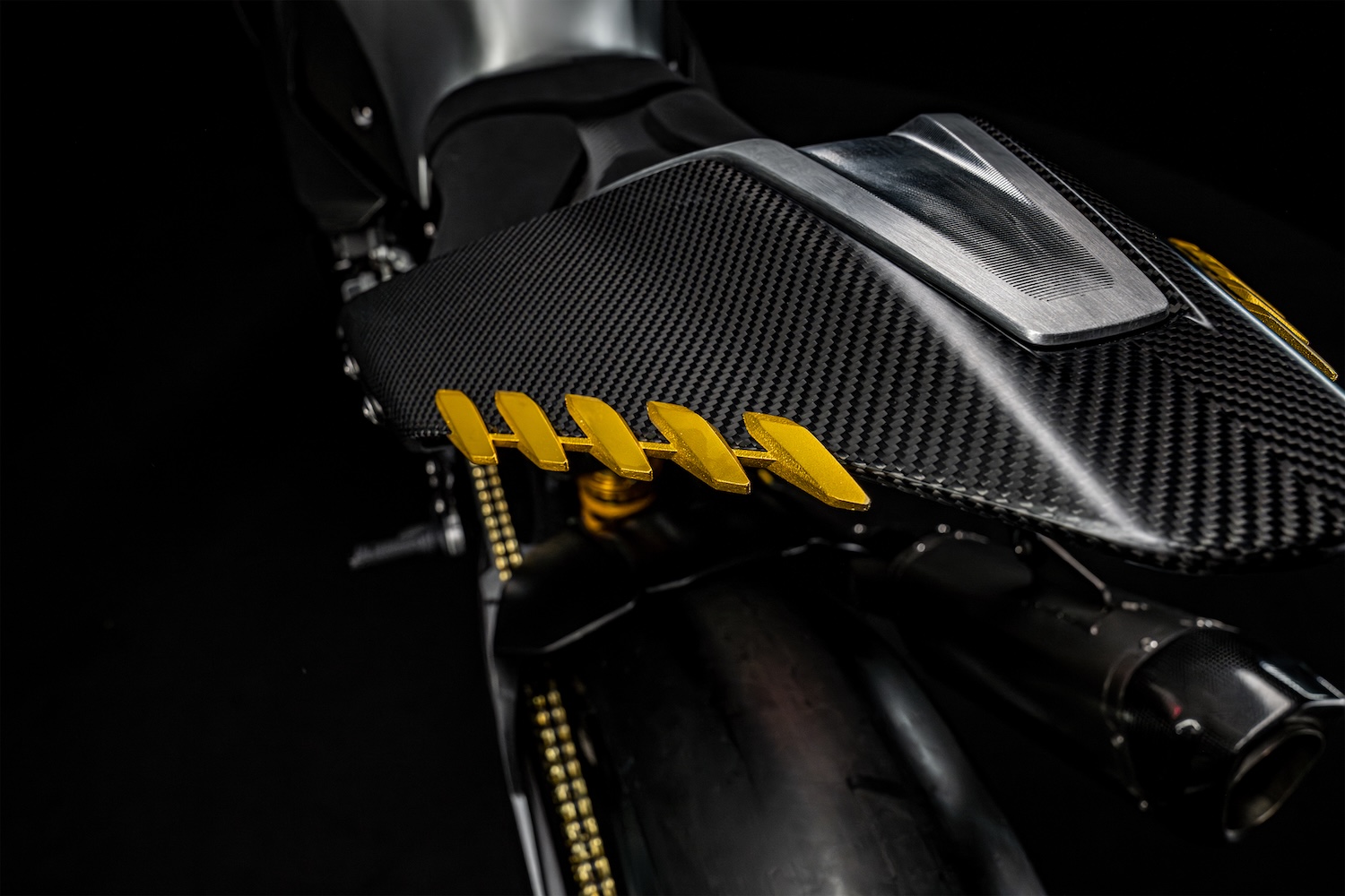 在空氣力學方面,Concept RR 的設計團隊特別針對高速穩定性、高速過彎極限與風阻最小化三大目標開發。從車頭的進氣孔一路導流到尾段,全車體像風的滑水道。而那對與賽車同步的小翅膀(Winglets)則讓前輪在高速時提供額外下壓力,改善抓地力與煞車穩定性。這套空力套件是 BMW 根據 WSBK 的比賽數據實戰調校,絕非只是造型浮誇。