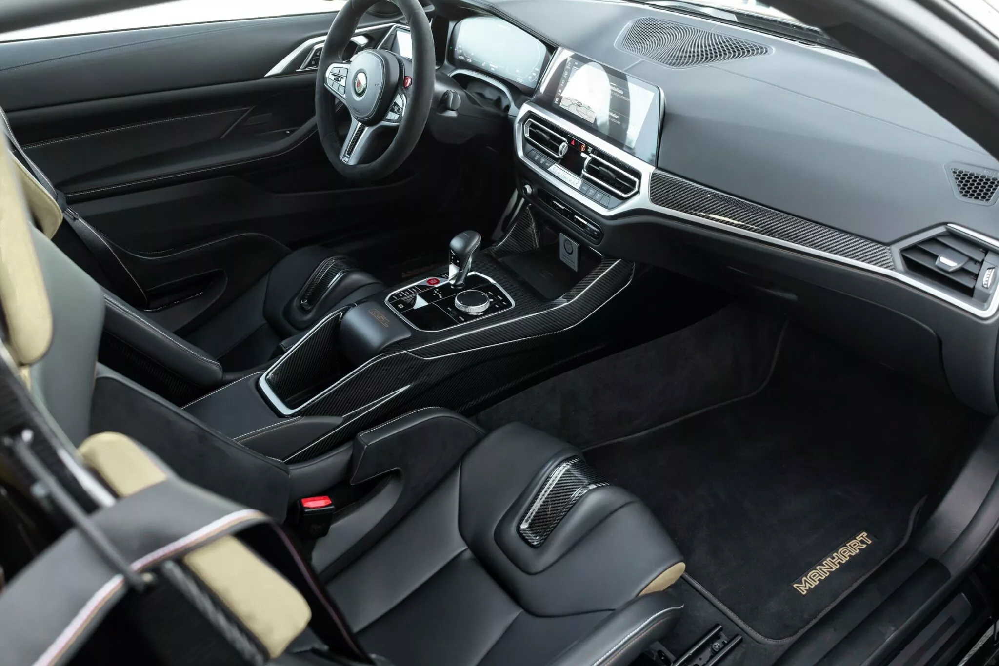 底盤部分,Manhart替M4換上H&R短彈簧來降低車身高度,並搭配前20吋、後21吋的啞光黑鋁圈,輪胎尺碼為前285/30與後305/25,提升抓地力與視覺張力。