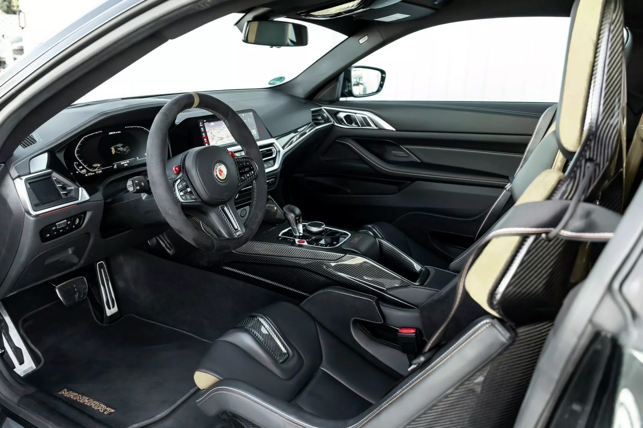 外觀方面也進行了一系列空力套件升級,包括全新前下擾流、前方定風翼、碳纖維側裙、大型尾翼與後下分流器。車內與引擎室同樣大量導入碳纖維配件,並採用來自M4 CSL的碳纖桶型賽車座椅,整體氛圍更加熱血、輕量化。