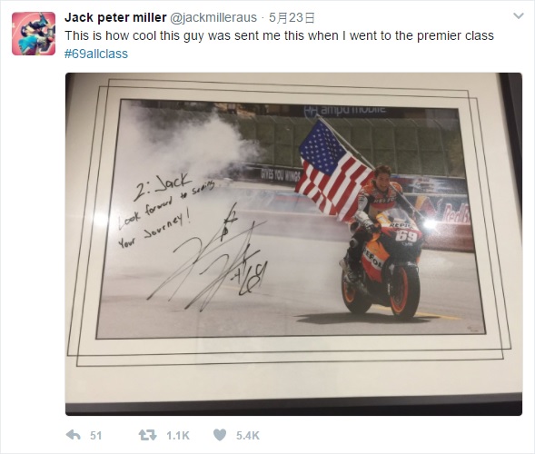 2015年,當澳洲車手Jack Miller 首度升上MotoGP,Nicky Hayden 為了鼓勵這位遠離家鄉的同文後輩,送給他一張自己在06年奪冠的照片,上面並寫著:
