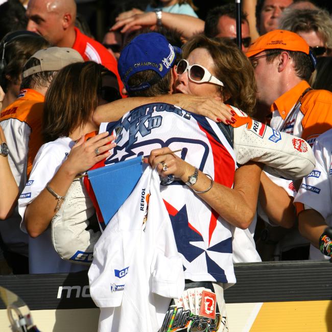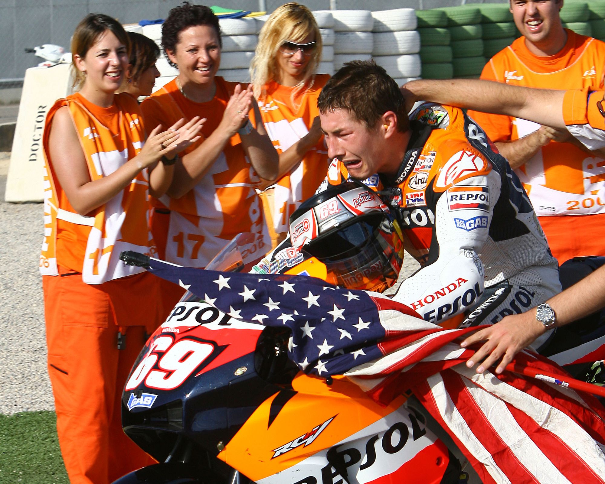 然而剩下的,就是歷史了。Rossi 在瓦倫西亞站中途自己轉倒,重回賽道後為時已晚。而肯塔基小子以分站第三名,年度積分戲劇性地一舉超越Rossi,達成他自童年時期就立下的夢想,不是成為太空人或科學家,而是世界冠軍。Rossi 及Pedrosa 在比賽結束後騎到Nicky 身旁,向他握手致意。
