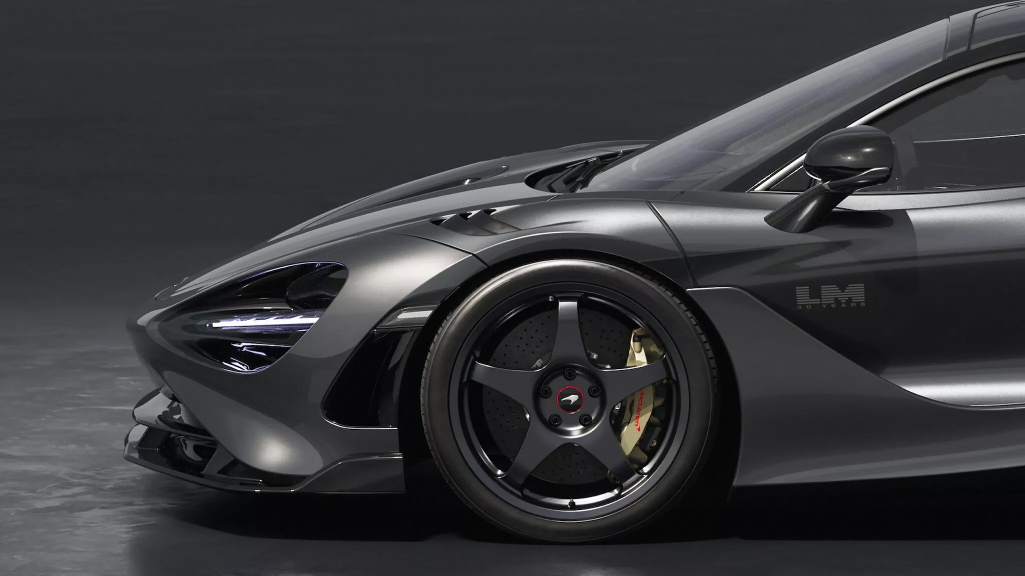 外觀僅提供兩款配色:Le Mans Grey利曼灰與McLaren Orange麥拉倫橘,車側飾有「LM」字樣徽飾,腳下換裝專屬五輻式LM鋁圈並採消光Stealth處理,並配置金色煞車卡鉗與紅色McLaren字樣,呼應當年F1 GTR #59的賽車風格。選配項目中還可加裝賽道制動套件(Track Brake Upgrade),進一步強化煞車性能。