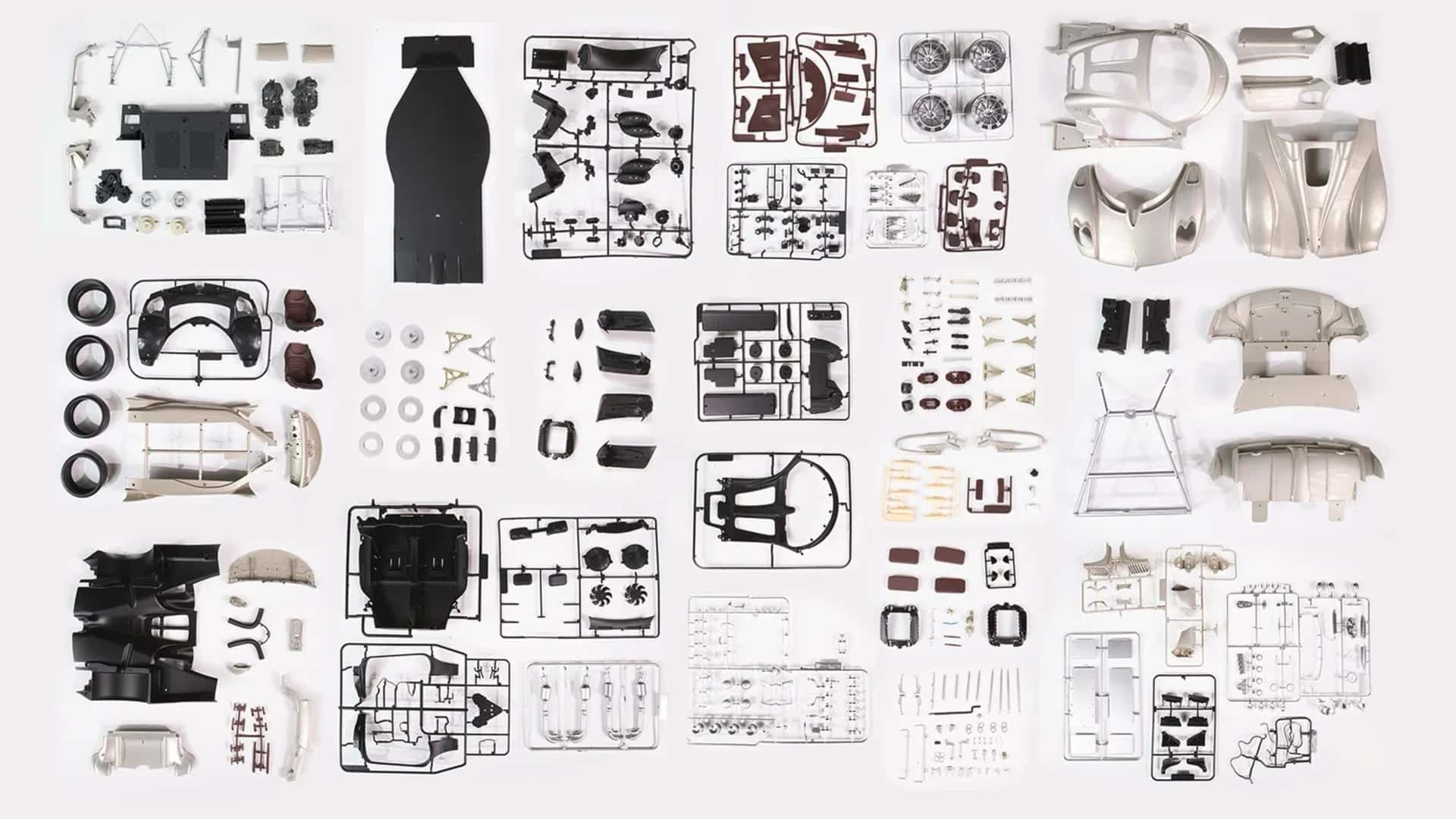 這台 1:8 比例的 Utopia 模型由超過 556 個零件與 200 多顆螺絲組成,採用「高級材質」製作,包括金屬車身、橡膠輪胎,還有可開啟的車門、可動的方向盤與懸吊系統。不過,你看不到 V-12 引擎的細節,也得自己用嘴模擬引擎聲音。