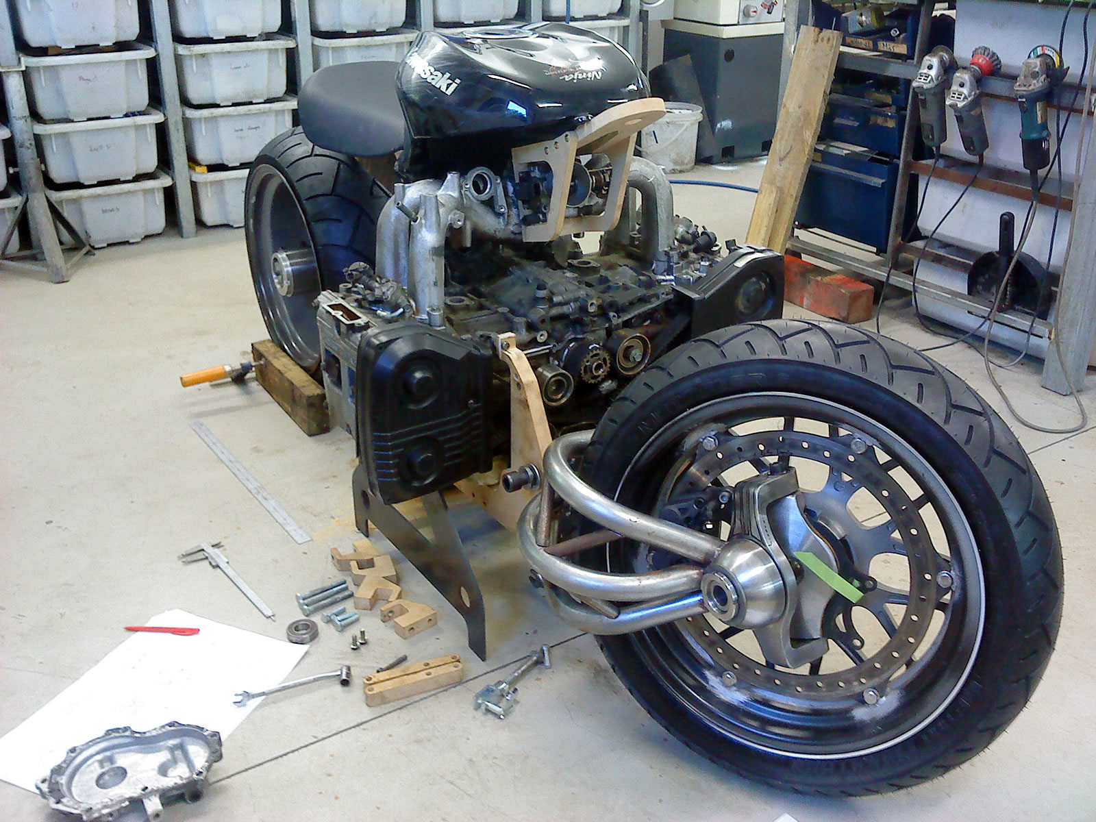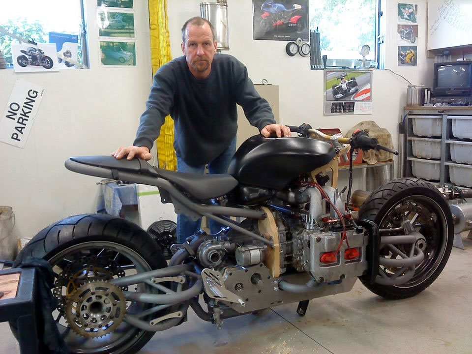 這個瘋狂的計畫在2009年就展開,設計師Ian McElroy運用電腦繪圖打造了一輛名為Kickboxer的機車,而那時的構想基礎就是運用上Subaru的WRX引擎,2.5L水平對臥裝在一輛機車上,這是一個多麼瘋狂的舉動,因此當時的新聞傳遍全球,而在紐西蘭的Marcel van Hooijdonk看到這個計畫,決定將它從電腦轉為現實,開始打造這輛有點神經的機車!