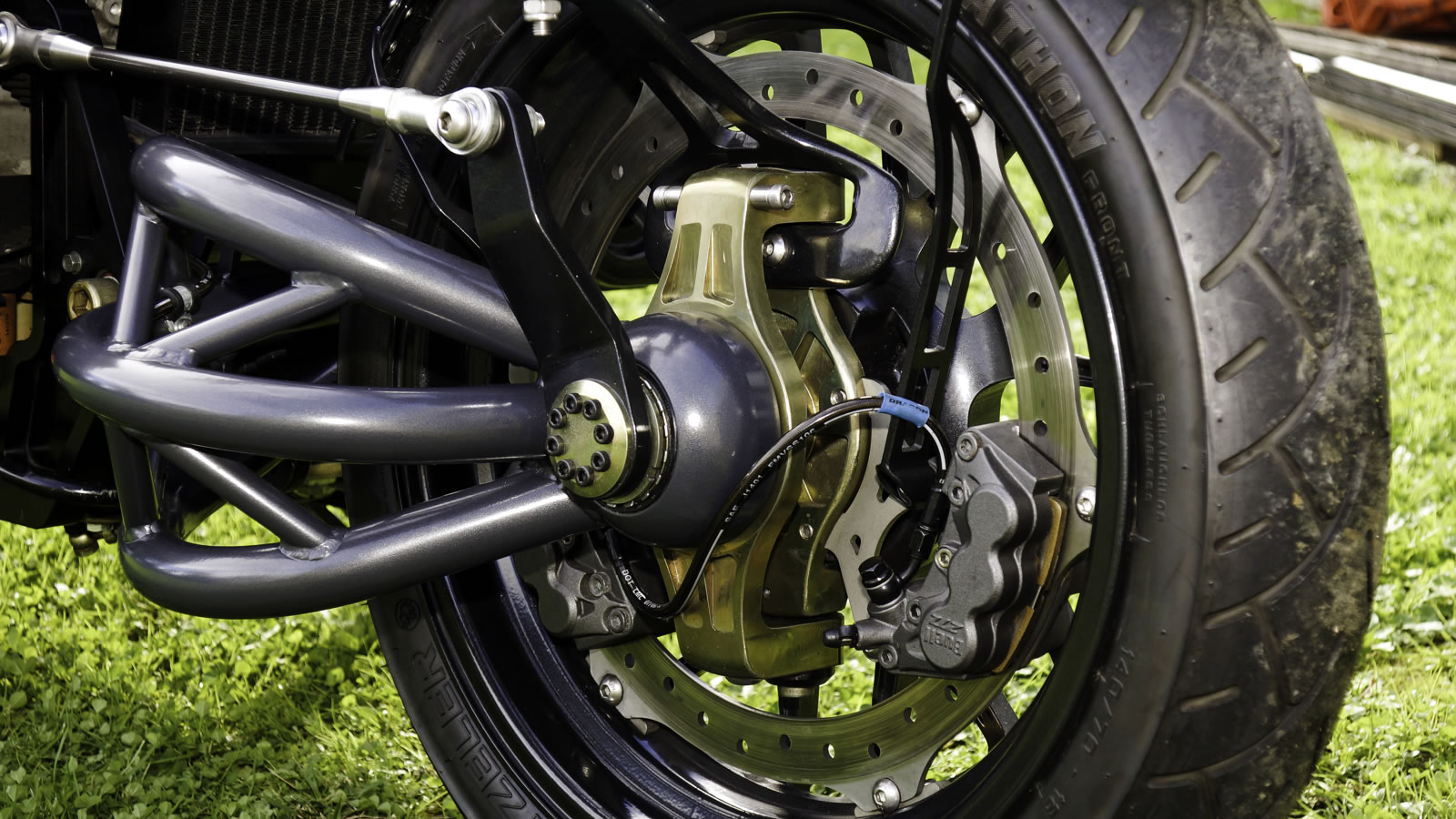 解決了這個問題之後,還必須要將引擎改為適用在機車上的設定,像是原本的扭力轉換器及自排變速箱的設計都要更改,並將所有的換檔開關移至左把手上,為了維持腳上不用做任何的操控,後煞車也整合至右邊把手上,騎乘時雙腳不用進行任何的操控,前煞車則是來自Buell,其他像是座椅、油箱則是直接從其他的機車上取下使用,其他的部件、車架、轉向機構皆是手工訂做,以符合這輛機車的需求。