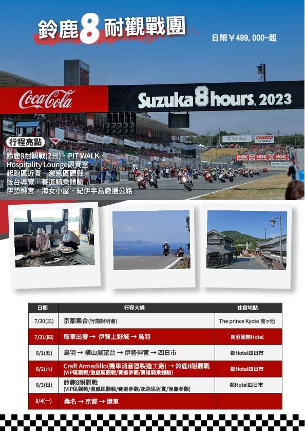 報名連結:三重縣 - 鈴鹿八耐觀戰團