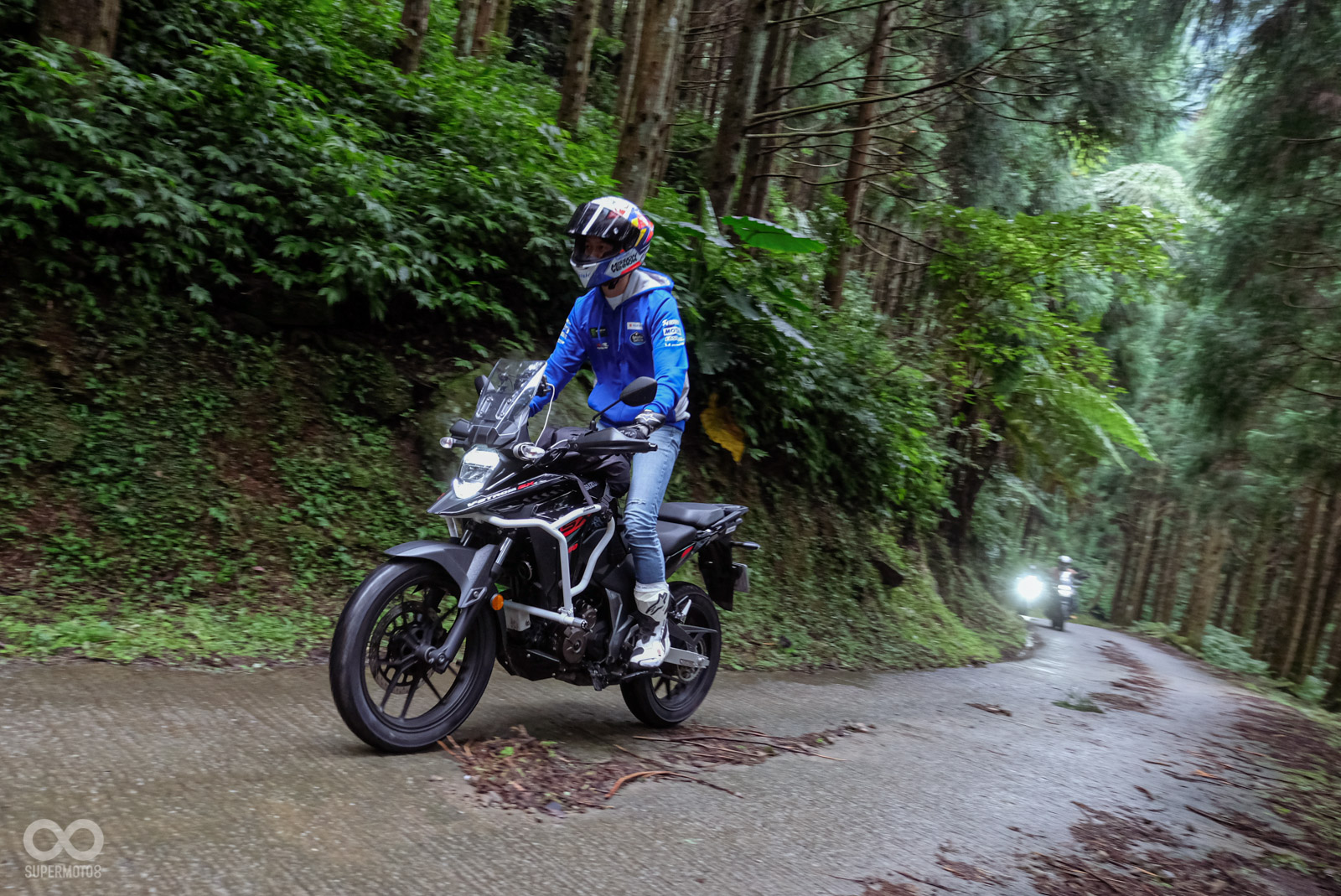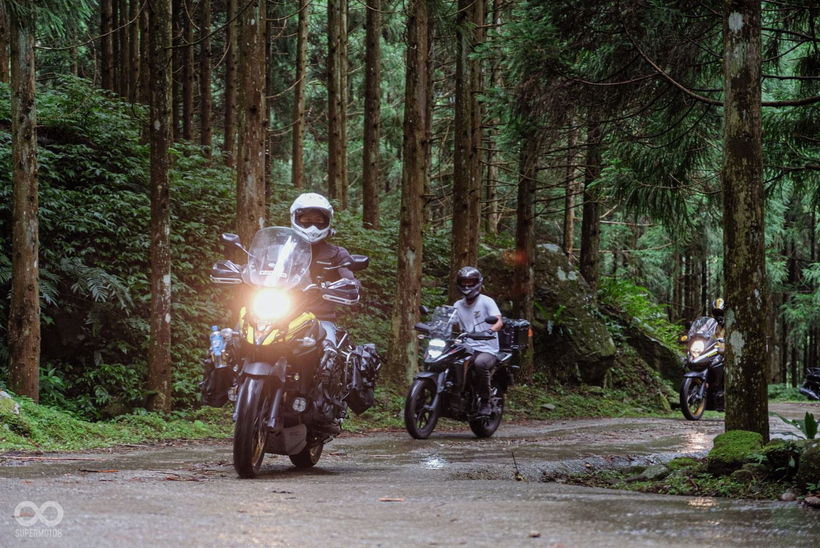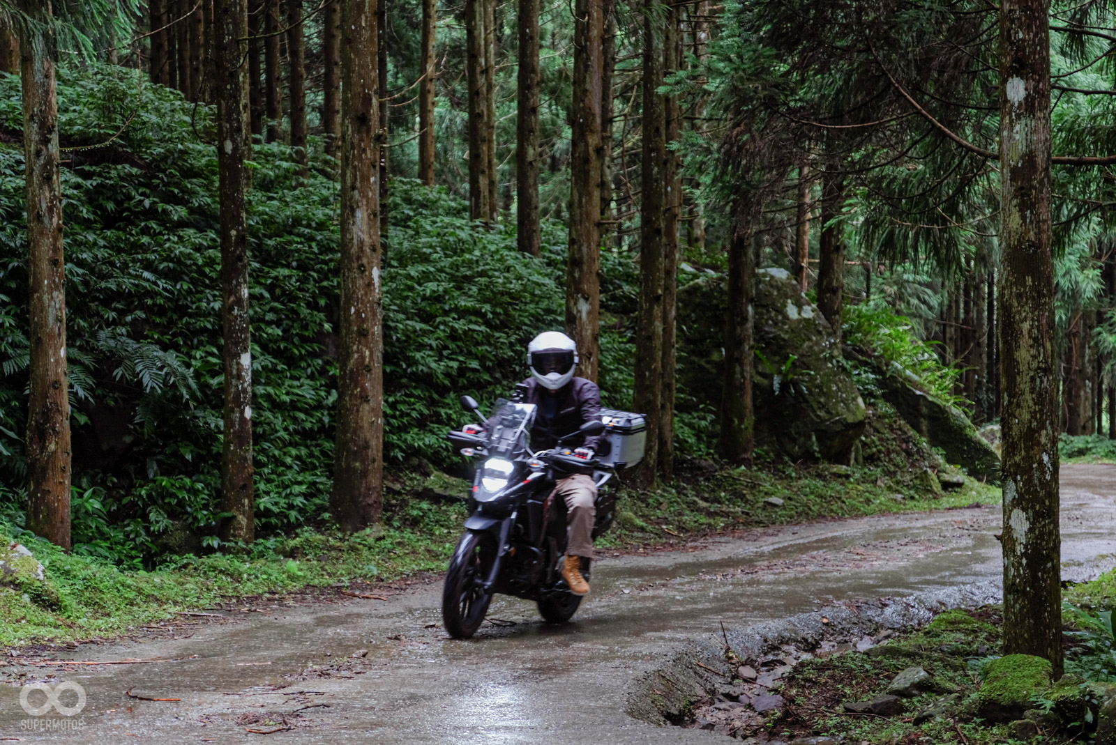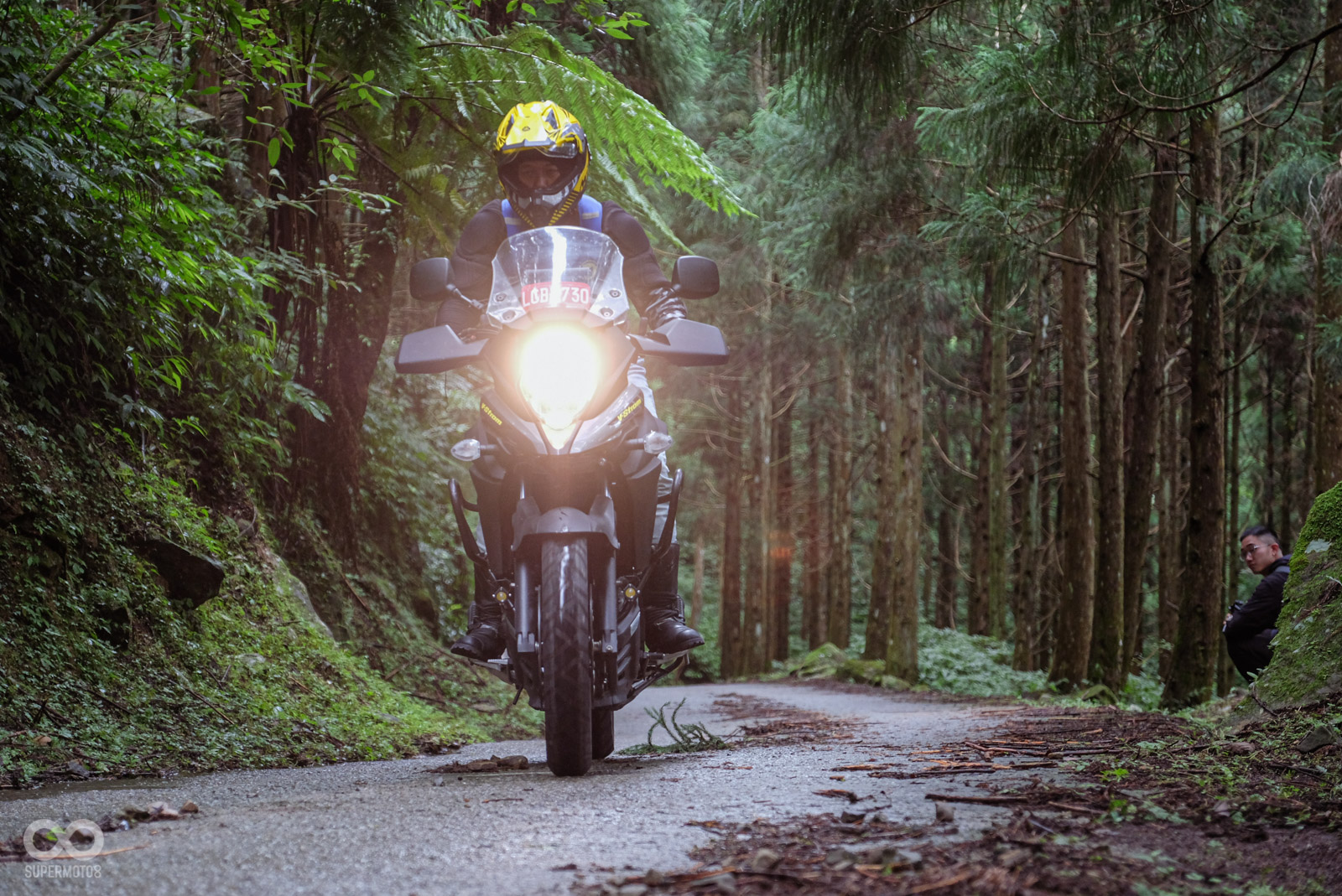 原廠設計活動路線時,同樣考量到並不是人人都有OFF-ROAD騎乘經驗,所以這次的蓬萊林道幾乎都有水泥+部分硬碎石路面,對於車輛只要夠熟悉,穩穩通過都毫無問題。路程搭配兩旁的針葉林景觀相當優美,絕對是拍照看起來超帥,同時又不會有過多騎乘壓力的新手友善路線。