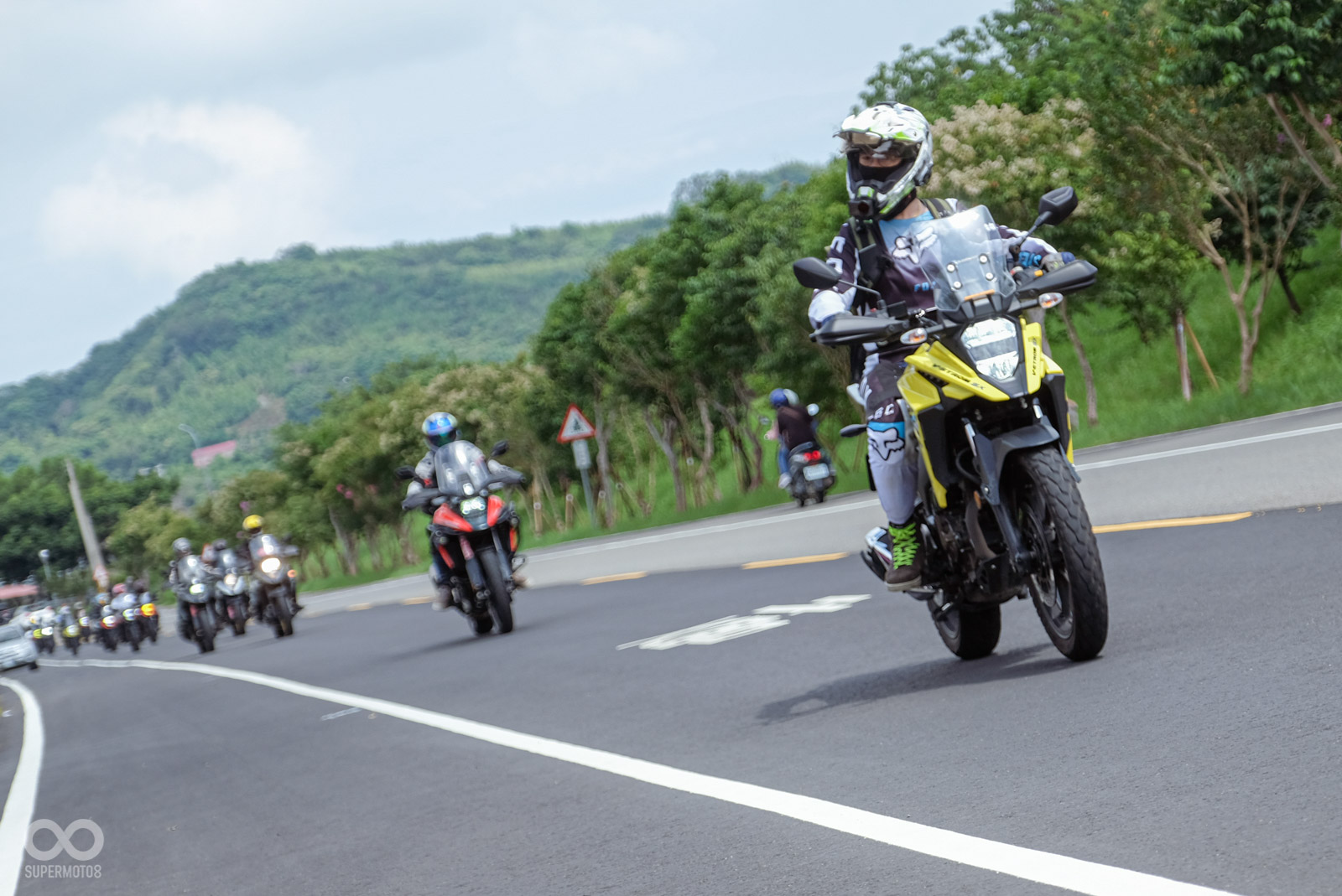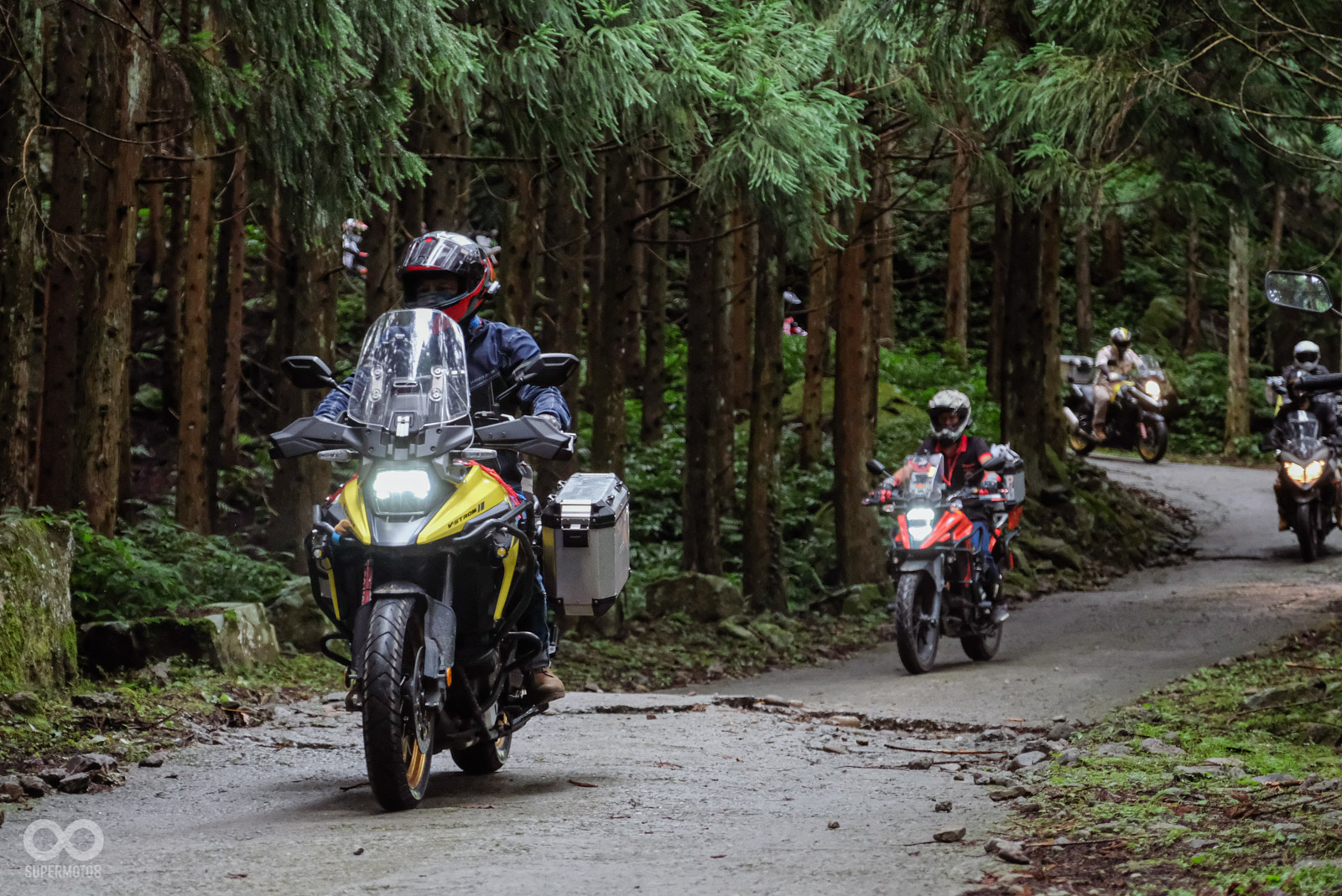 6 月 29 日早晨,萬里無雲的好天氣,一早 7-11 田野門市就被廣大的 SUZUKI V-STROM 大軍佔領,經過整隊與行前說明後車隊迅速出發,這次活動對車主來說的最大亮點,莫過於剛在台灣正式發表的 DR-Z 驚喜亮相這次的官方活動,並邀請 日本原廠試車手「田畑廉」一起騎乘蓬萊林道,能在日本以外的國家親自騎乘體驗自己開發的 DR-Z4 ,想必是很特別的體驗。