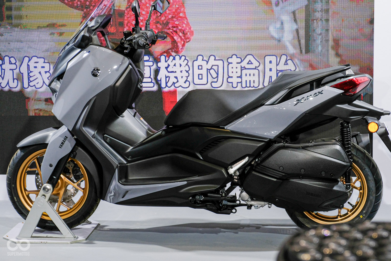另一款同樣吸引目光的是全新XMAX 300。這次不只外型更加動感,還是首次於台灣在地組裝的MAX車系,象徵YAMAHA對台灣市場的重視與本地生產技術的成熟。全新XMAX維持MAX家族的運動風格,車身設計靈感來自飛鏢造型,整體線條流線且帶有張力,融合銳利輪廓與立體感十足的X元素細節,展現出豪華速克達應有的霸氣與速度感。